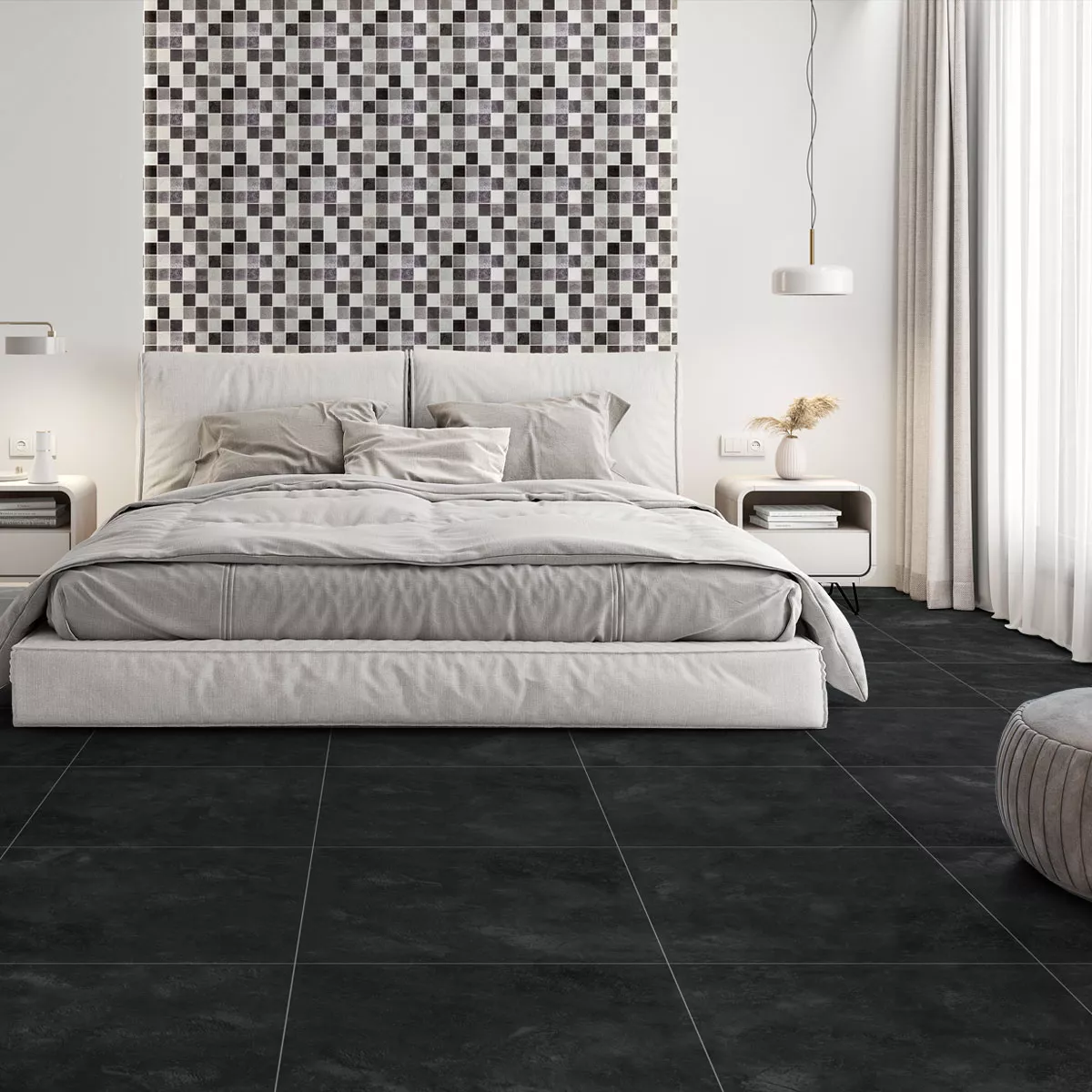 Moderne Eleganz trifft auf industriellen Charme mit unseren Cortina Bodenfliesen in Betonoptik. Diese quadratischen Fliesen in Dunkelgrau verleihen jedem Raum eine zeitlose und stilvolle Atmosphäre.