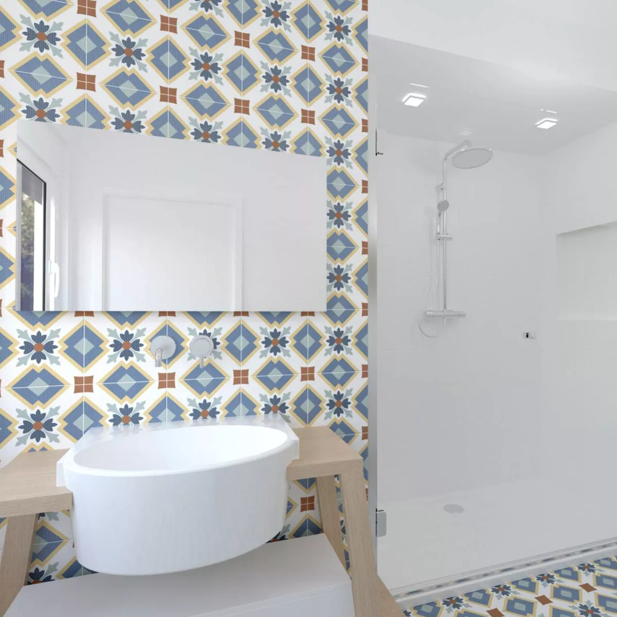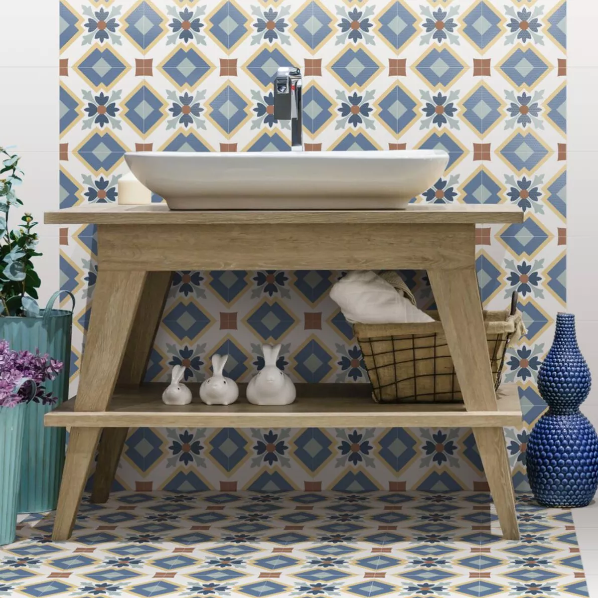 Mit ihren Vielfalt an Farben - Blau, Gelb, Braun und Weiß - passt die Feinsteinzeug Bodenfliese Bucharest zu jeder Einrichtung und schafft ein stimmiges Ambiente. Darüber hinaus ist sie für Fußbodenheizungen geeignet und bietet damit ein Plus an Komfort.