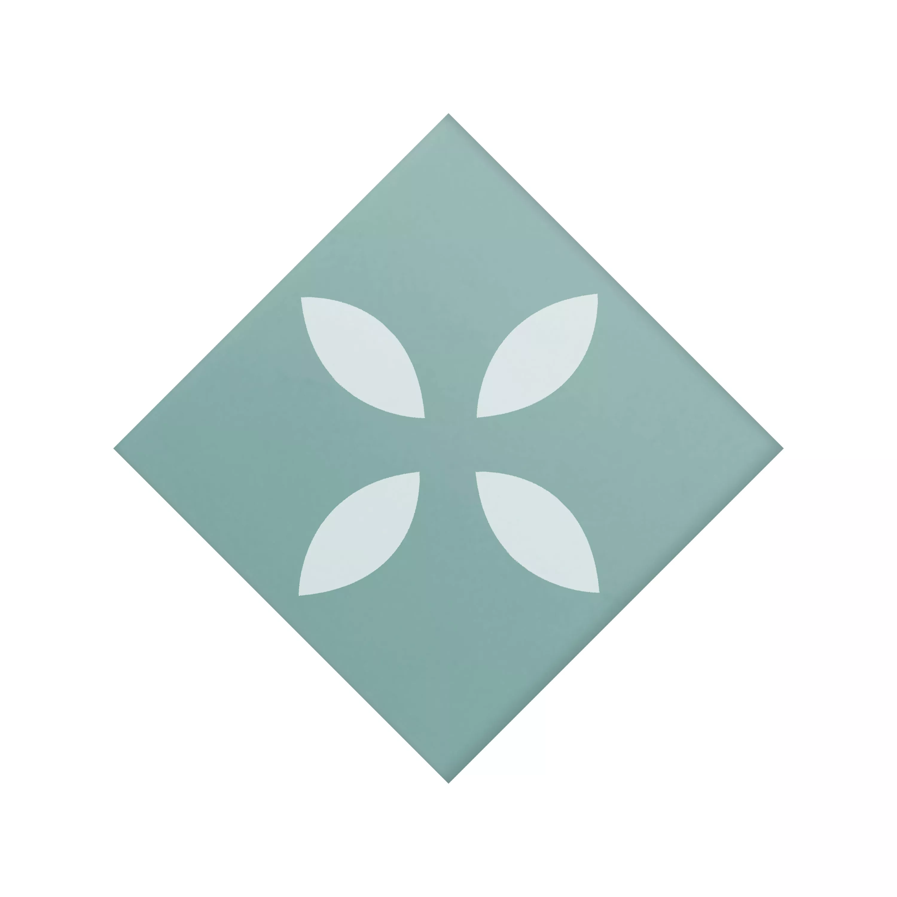 Die Feinsteinzeug Fliesen Genexia Decor Türkis Einleger bringen frische Farbakzente und einen Hauch von Retro-Charme in Ihr Zuhause. Mit ihrer quadratischen Form und der matten Oberfläche eignen sie sich ideal für den Innenbereich, Wohnräume, Nassbereiche wie Bad und Dusche sowie die Küche.