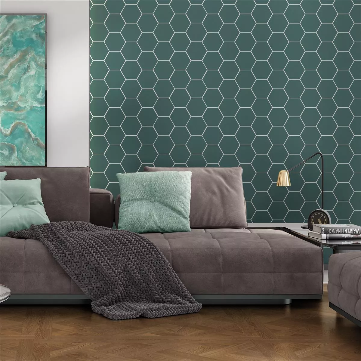 Feinsteinzeug Fliesen Modena Hexagon Uni Grün