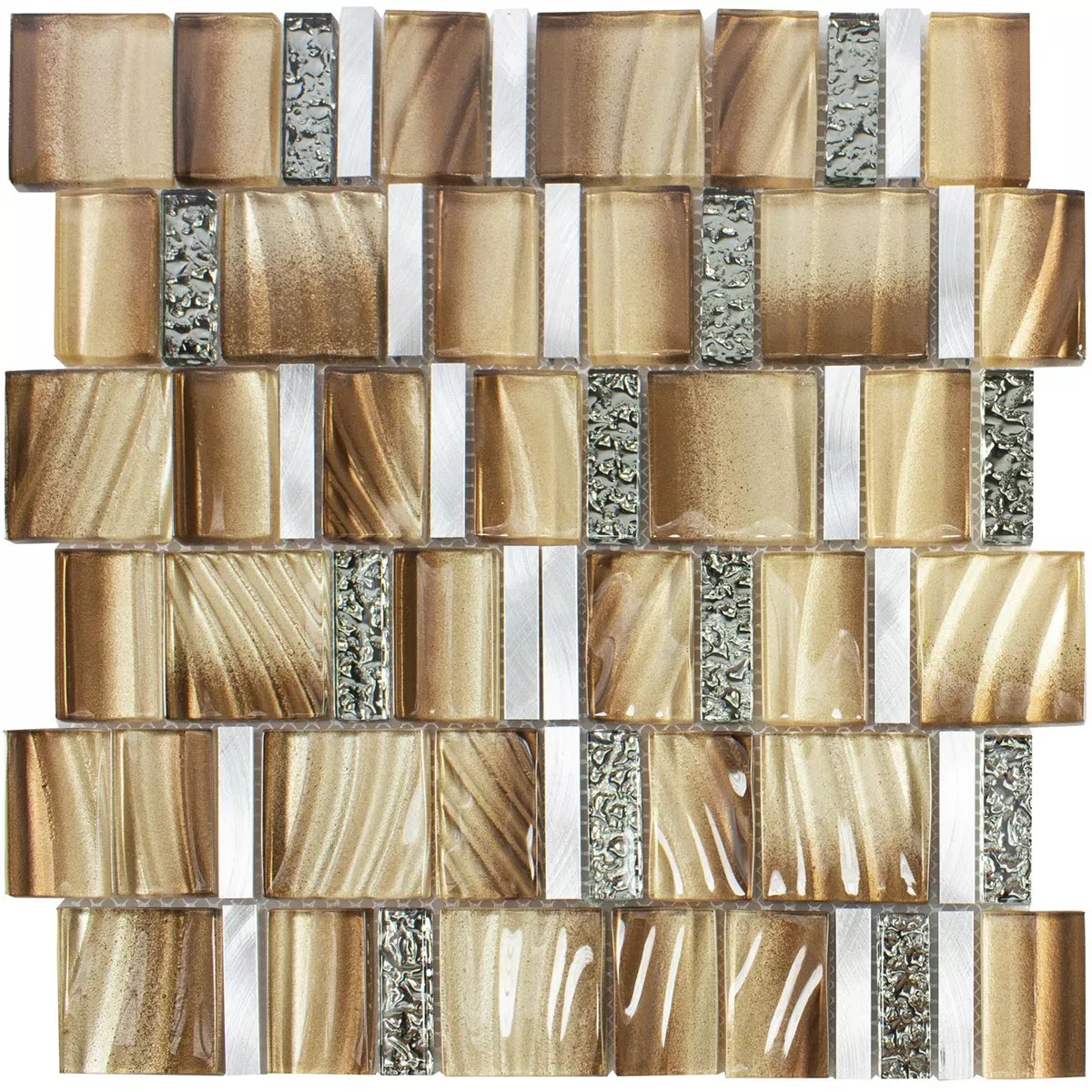 Glas Metall Mosaikfliesen Union Braun Silber