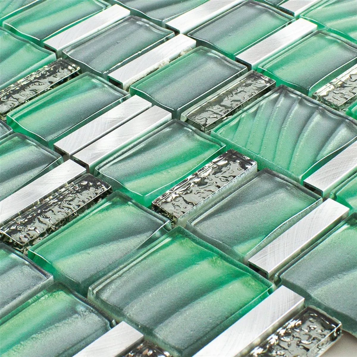 Die Glas-Metall-Mosaikfliesen Union in Grün und Silber sind eine stilvolle und moderne Wahl für Wandverkleidungen. Diese Mosaikfliesen bestehen aus einer hochwertigen Kombination von Aluminium und Glas, die für eine luxuriöse und zeitgemäße Ästhetik sorgen.
