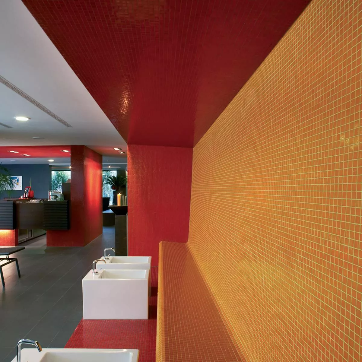 - In und um Schwimmbäder, wo die Fliesen kontinuierlicher Feuchtigkeit ausgesetzt sind, bieten sie die notwendige Beständigkeit.