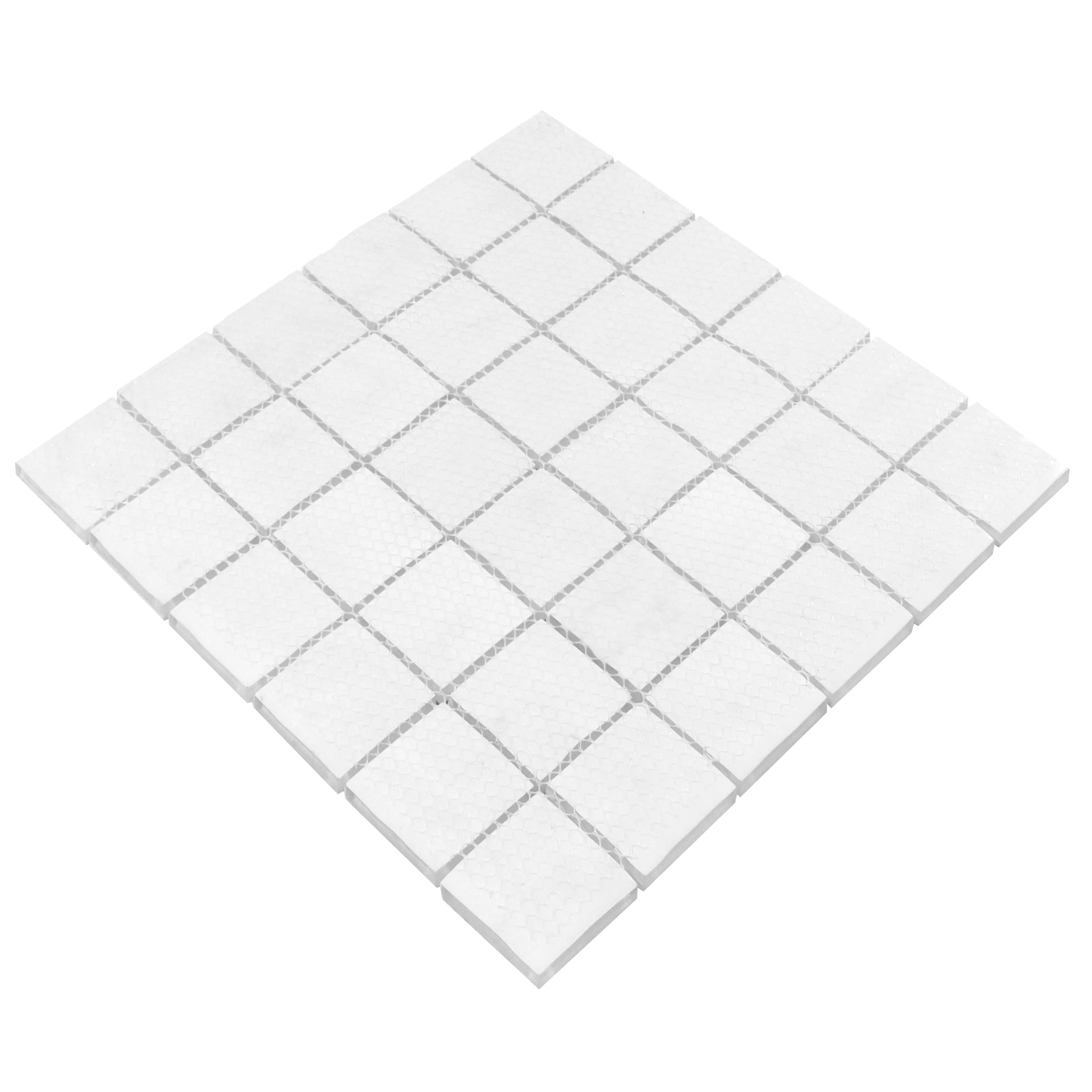 Mit einer Steingröße von 48x48 mm und einer Stärke von 8 mm bietet die Glasgow Fliese sowohl Stabilität als auch eine auffällige visuelle Präsenz. Die Fliesen- / Mattengröße von 29,8x29,8 cm deckt eine Fläche von 0,088 m² pro Matte ab und ist in einem quadratischen Format erhältlich. Die großzügige Fugenbreite von 3 mm sorgt für ein sauberes und gleichmäßiges Verlegebild.
