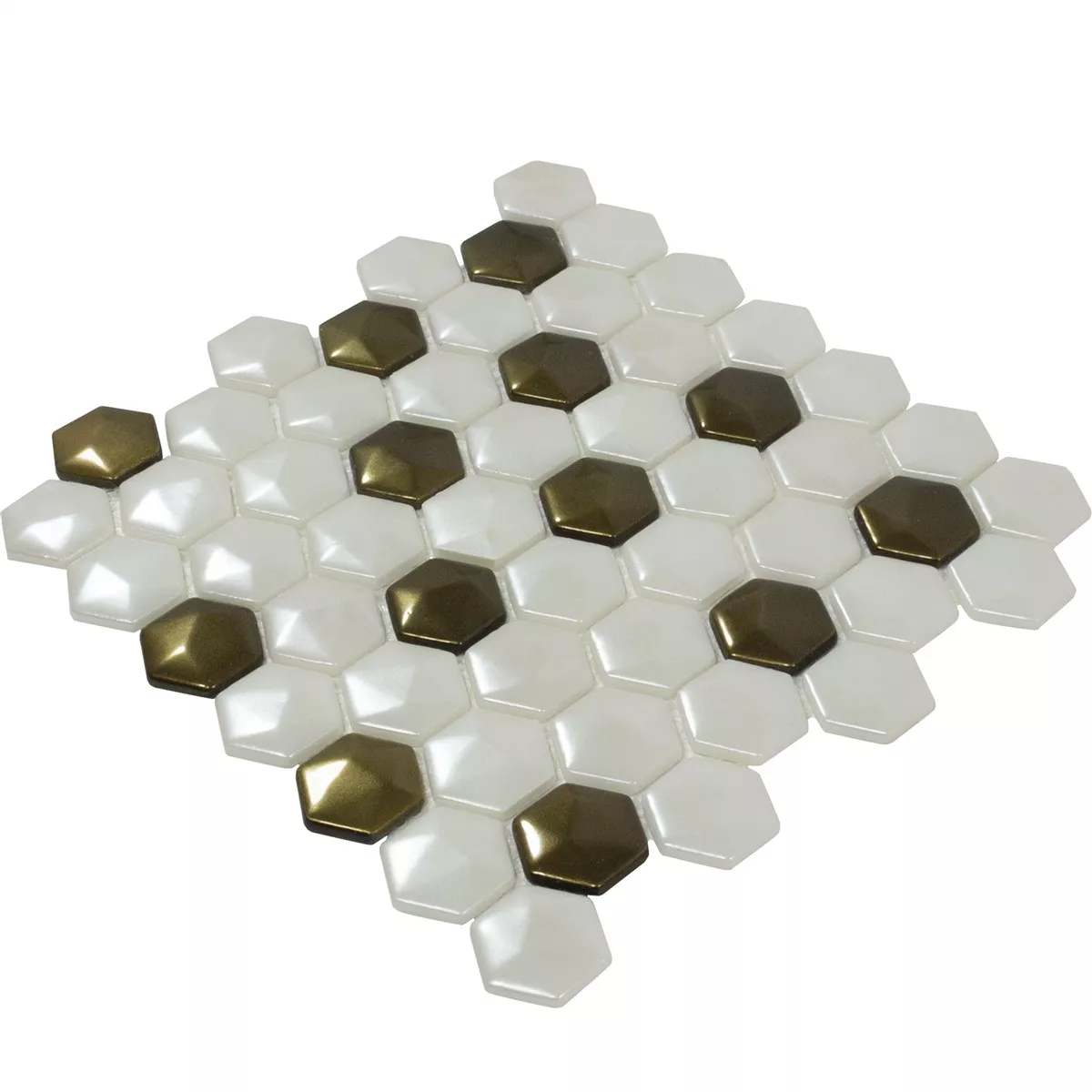 Glasmosaik Fliesen Las Vegas Hexagon 3D Weiß Gold
