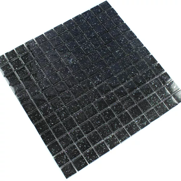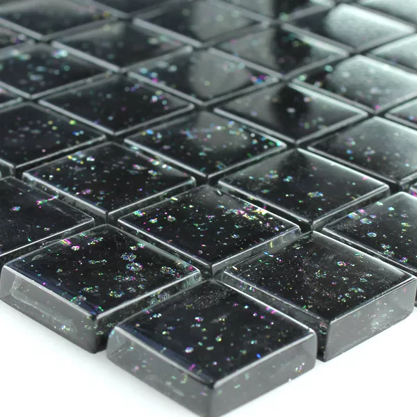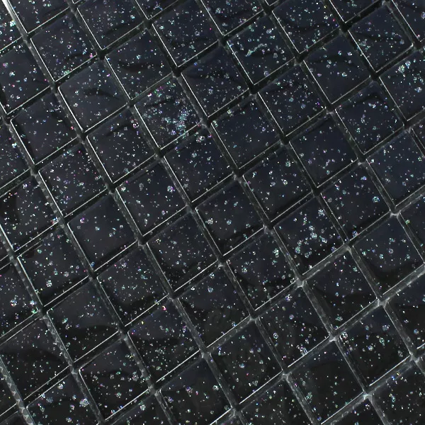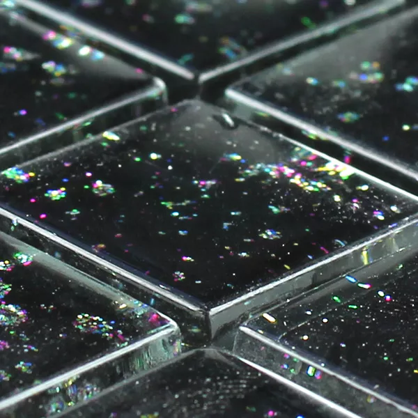 Glasmosaik Fliesen Nacht Schwarz Glitzer 23x23x8mm