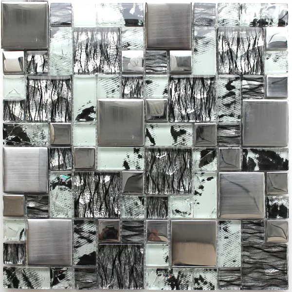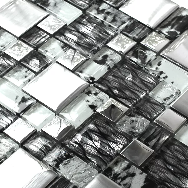 Glasmosaik Fliesen Zebra Anthrazit Silber