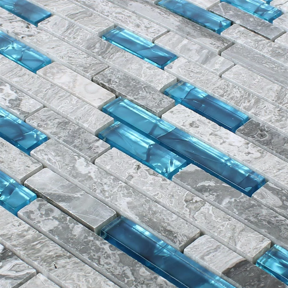Glasmosaik Natursteinfliesen Sinop Grau Blau Stick