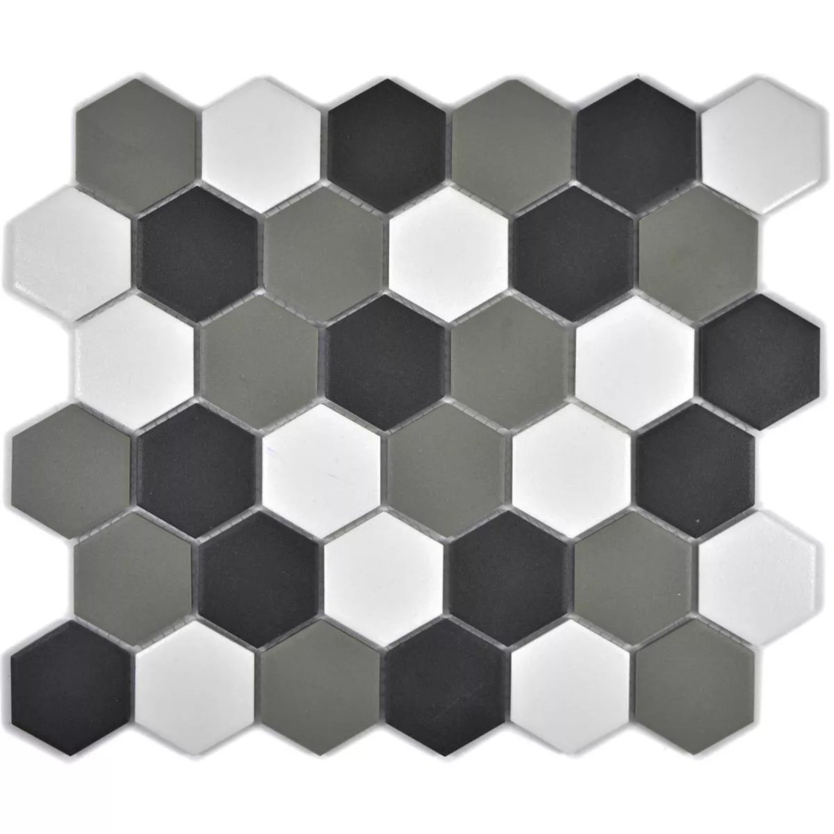 Keramik Mosaikfliese Hexagon Bern Schwarz Weiss