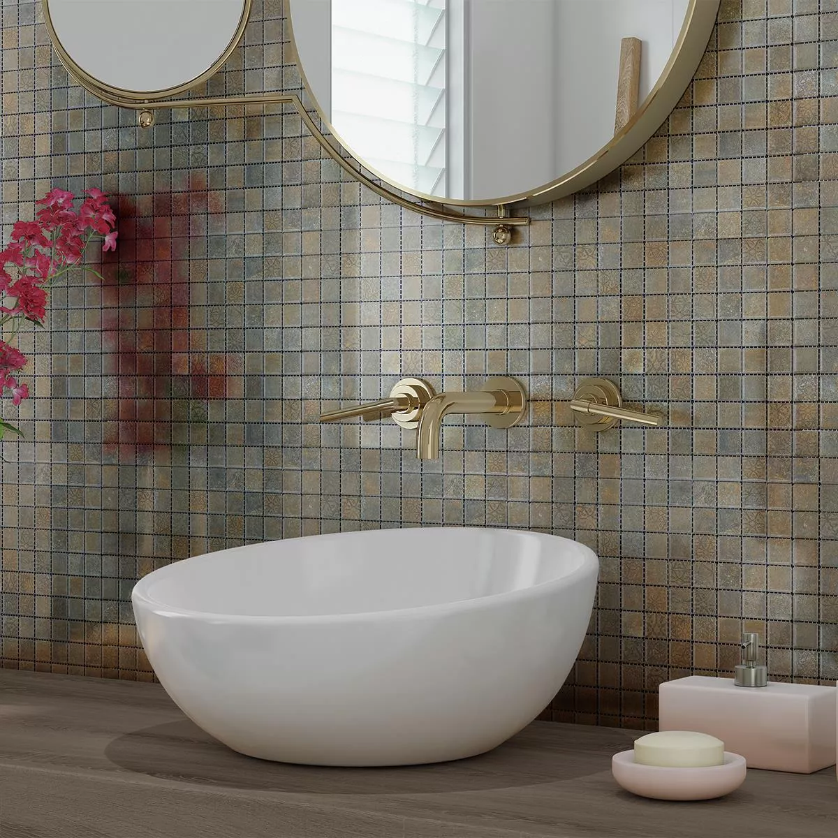 Jede Fliese und jedes Mosaik haben aufgrund individueller Materialeigenschaften und Anwendungsbedingungen unterschiedliche Anforderungen an das Zuschneiden, Verlegen und Verarbeiten. Fragen Sie einen örtlichen Experten für das korrekte und sichere Verlegen Ihrer Mosaike oder Fliesen. Wir haften nicht für unsachgemäßen Gebrauch und fehlerhafte Verarbeitung von Baumaterialien.
