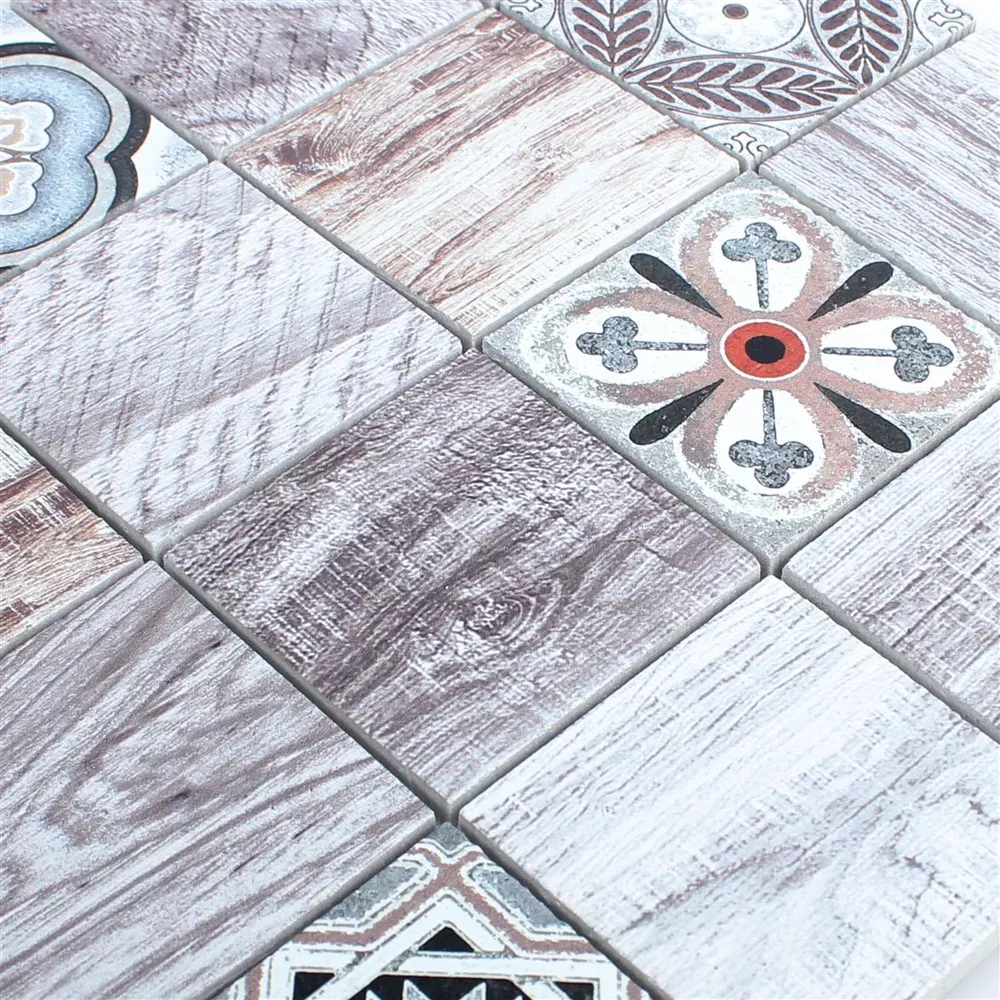 Mit dem kreativen Mix des Mosaiks Yaren gestalten Sie stilvoll Ihre Böden und Wände. Eine Mosaikmatte dieser Ausführung beinhaltet hellbraun getönte Fliesen mit unterschiedlicher, detailreicher Holzmaserung. Sie imitiert realitätsnah Holzdielen, sogar Astlöcher, Schnitte und Kerben im Holz werden wiedergegeben. Vier weitere Natursteine bilden das Highlight des Mosaiks. Sie sind mit unterschiedlichen Kachelmustern in klassischem Stil gestaltet. Schwarze, blaue und orange Farbtupfer in diesen Fliesen erweitern das an Holz orientierte Farbschema um lebendige Akzente. In der Anwendung ermöglichen die gleich großen Marmorfliesen dieser originellen Zusammenstellung ein einheitliches und gleichzeitig abwechslungsreiches Gesamtbild. Jede Fliese des Mix hat ein individuelles Oberflächenmuster, so dass sich Ihnen bei ihrer Anordnung die größtmögliche Freiheit für die Umsetzung Ihrer persönlichen Vorstellungen bietet.