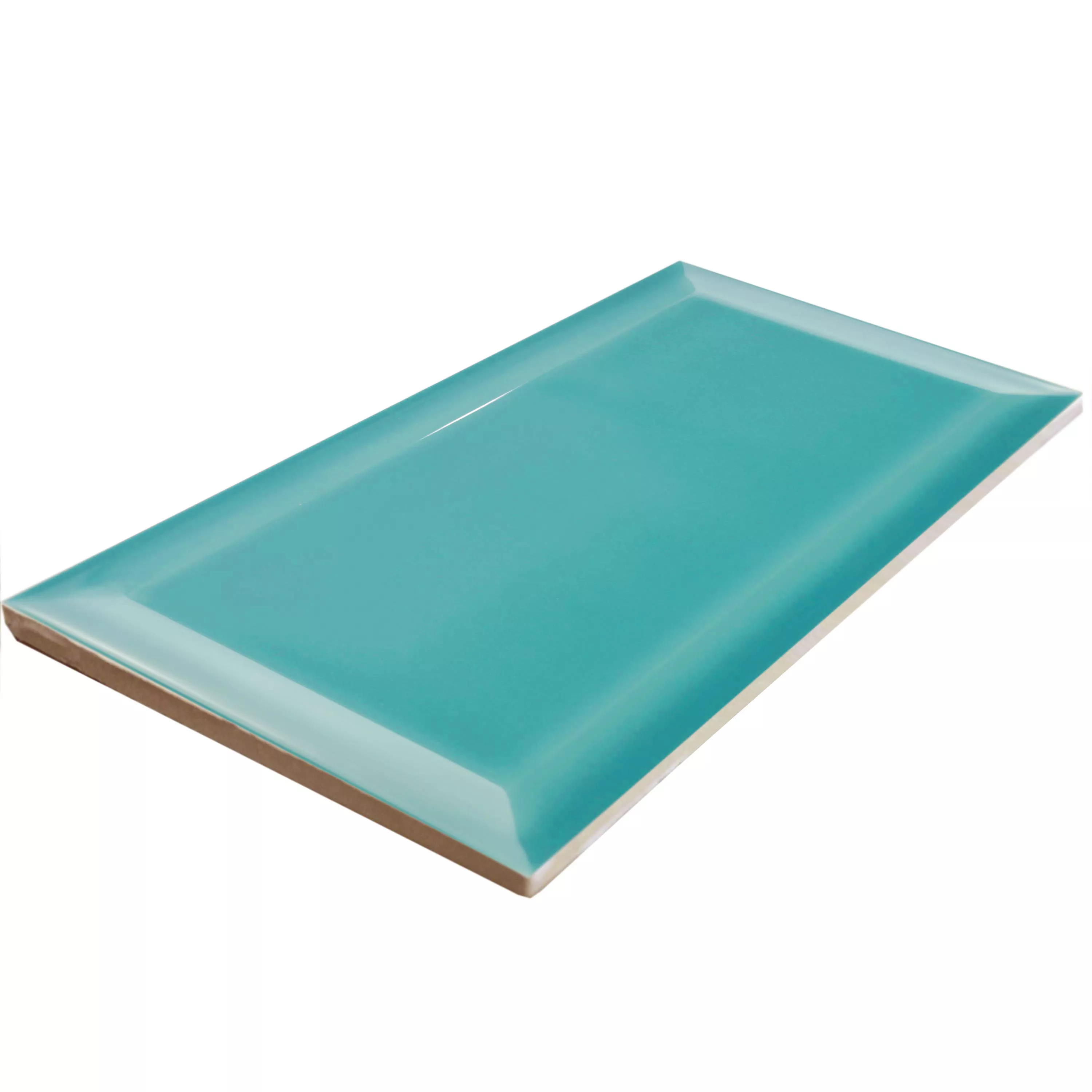 Metro Wandfliesen Brussel Facette 10x20x0,7cm Azul Turquesa