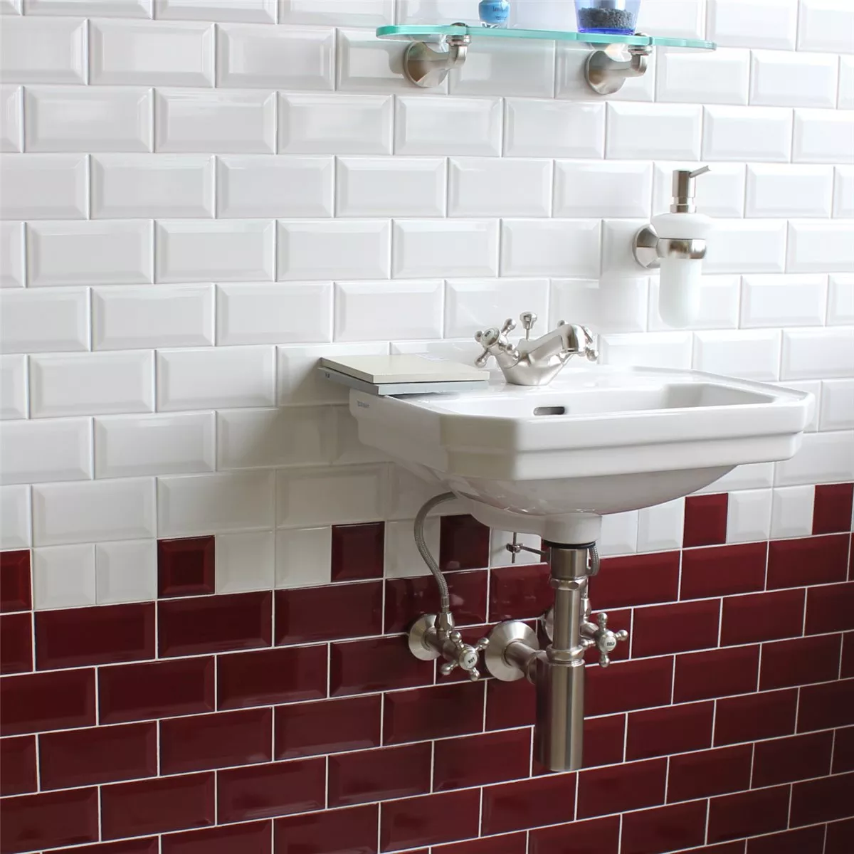 Metro Wandfliesen Granato Bordeaux Glänzend Facette 7,5x15cm