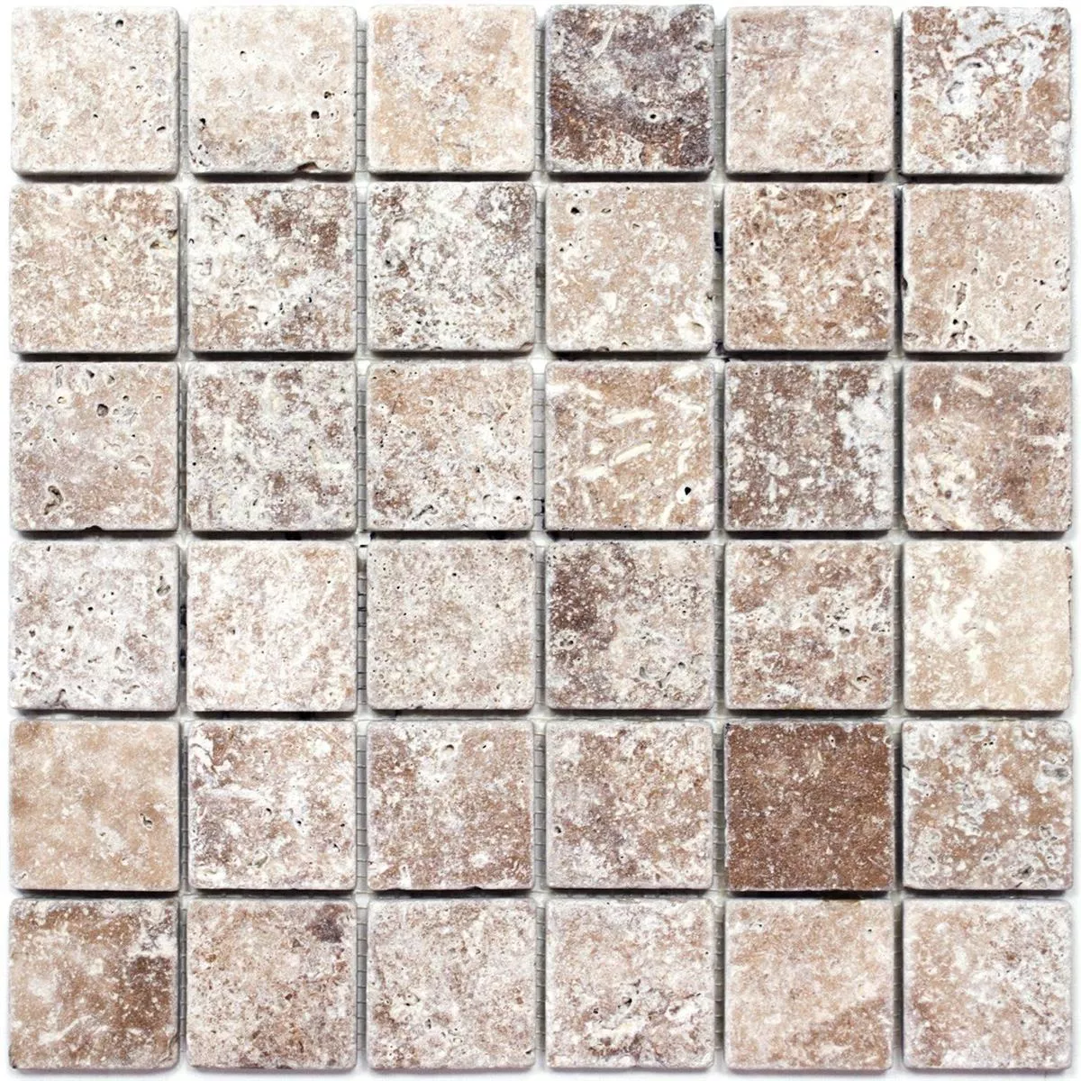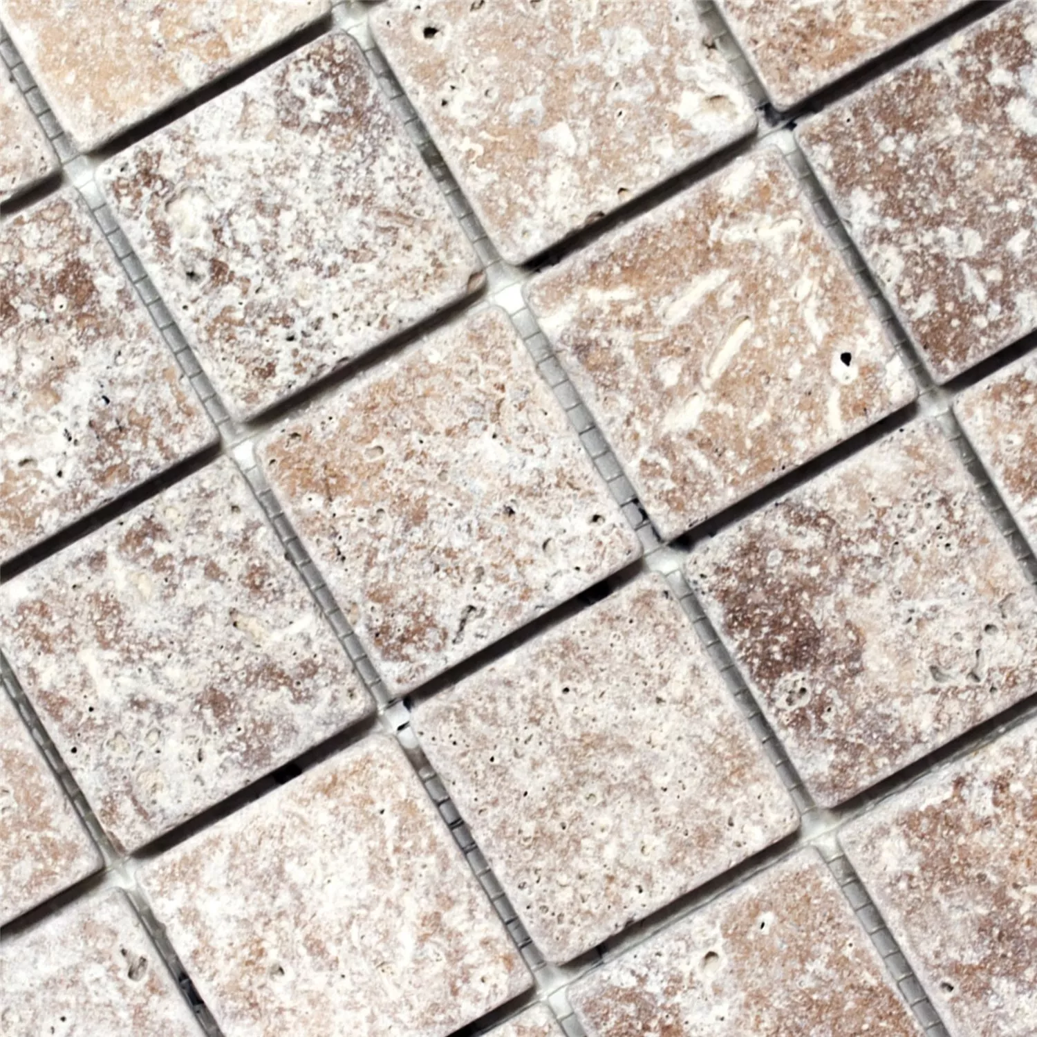 Die Mosaikfliesen Travertin Patara Noce 48 bestehen aus terrestrischer Sedimentgestein, der durch einen Prozess der schnellen Ausfällung von Kalziumkarbonat an der Mündung von heißen Quellen oder in Kalksteinhöhlen gebildet wird. Travertin Patara Noce hat oft ein faseriges oder konzentriertes Aussehen und besteht in weißer, brauner, cremefarbener und rostiger Sorte. Diese Natursteinfliesen bringen einzigartige Wärme in Küchen, Wohnräume und Bäder. Travertin wird häufig in modernen Häusern als ein natürliches und stabiles Baumaterial verwendet.