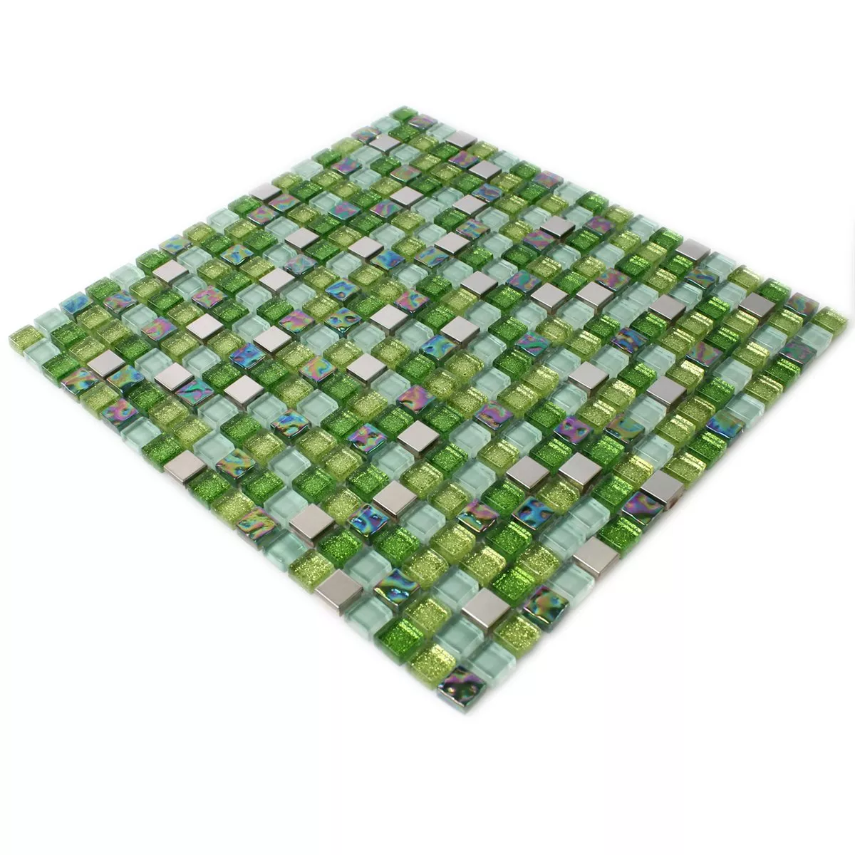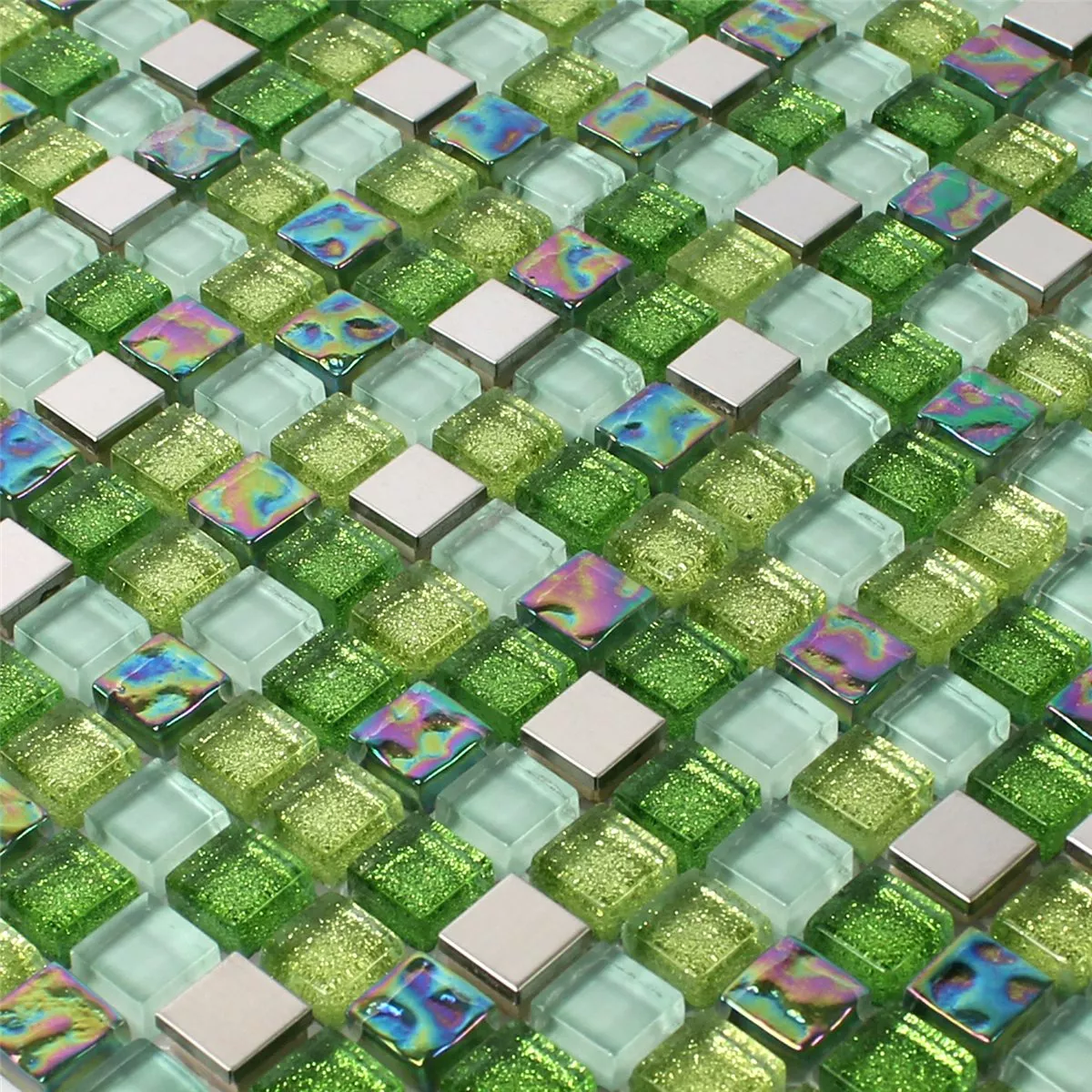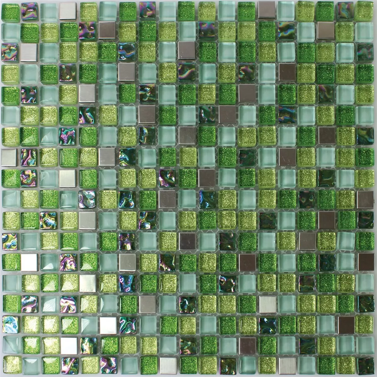 Muster Glas Edelstahl Metall Mosaikfliesen Sokrates Grün Silber