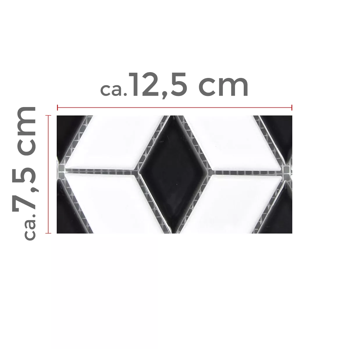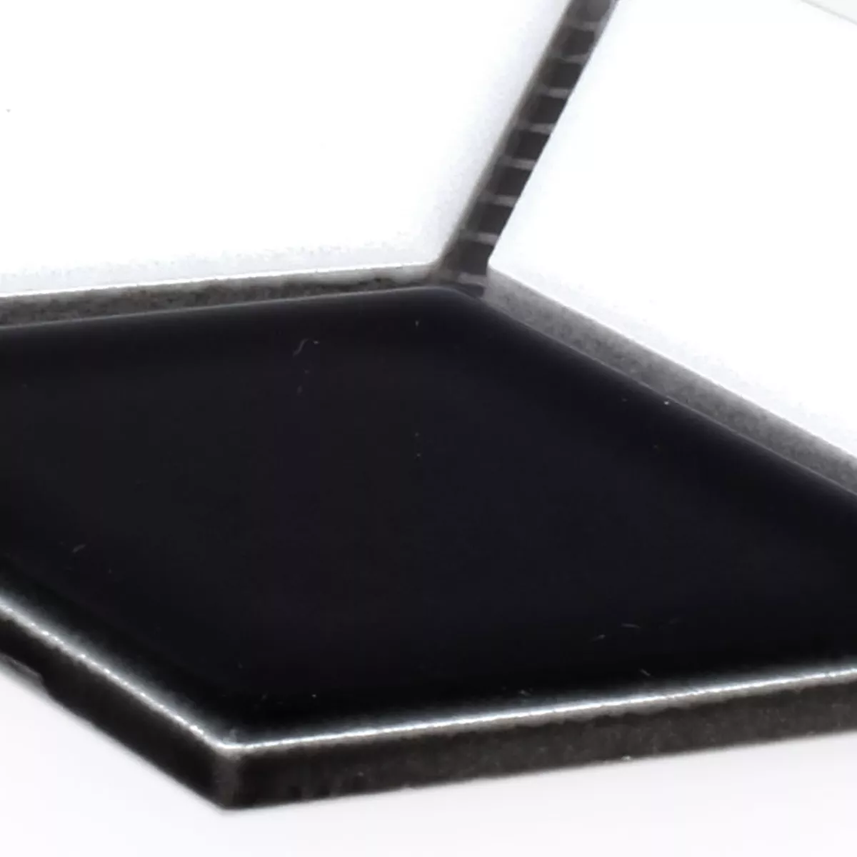 Muster Keramikmosaik Kosmos 3D Würfel Schwarz Weiß Glänzend