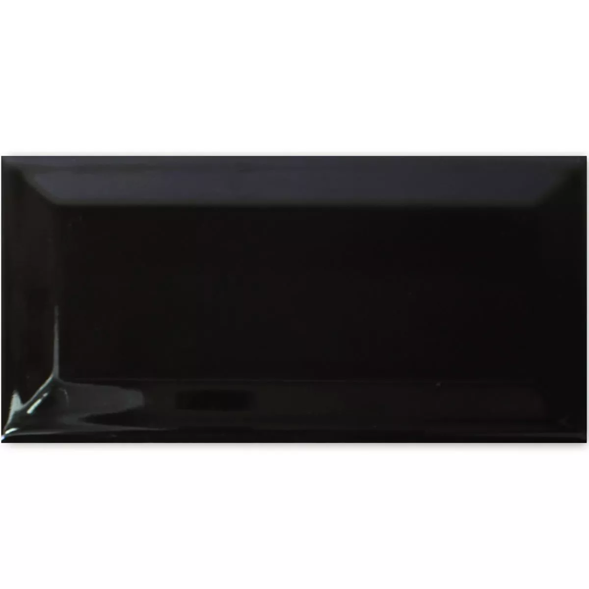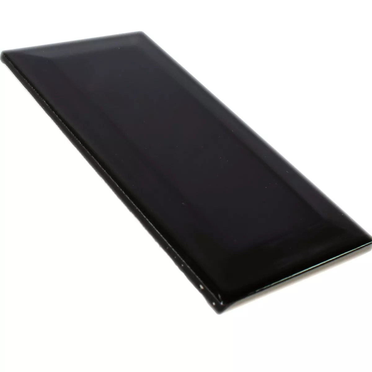 Muster Metro Wandfliesen Lava Schwarz Glänzend Facette 7,5x15cm
