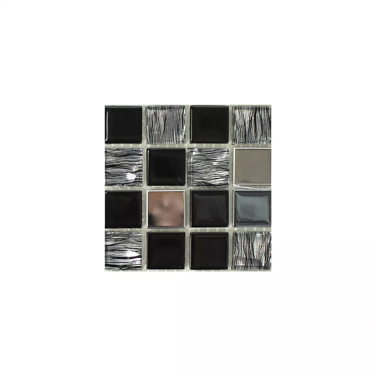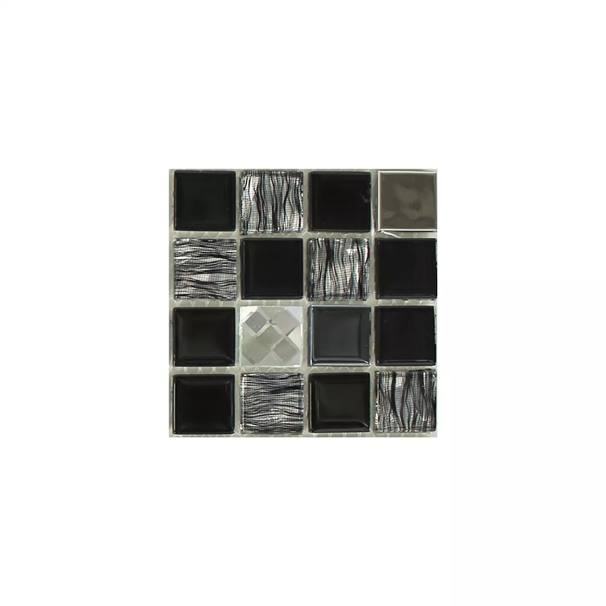 Muster von Glas Edelstahl Mosaik Amasya Selbstklebend Schwarz Silber