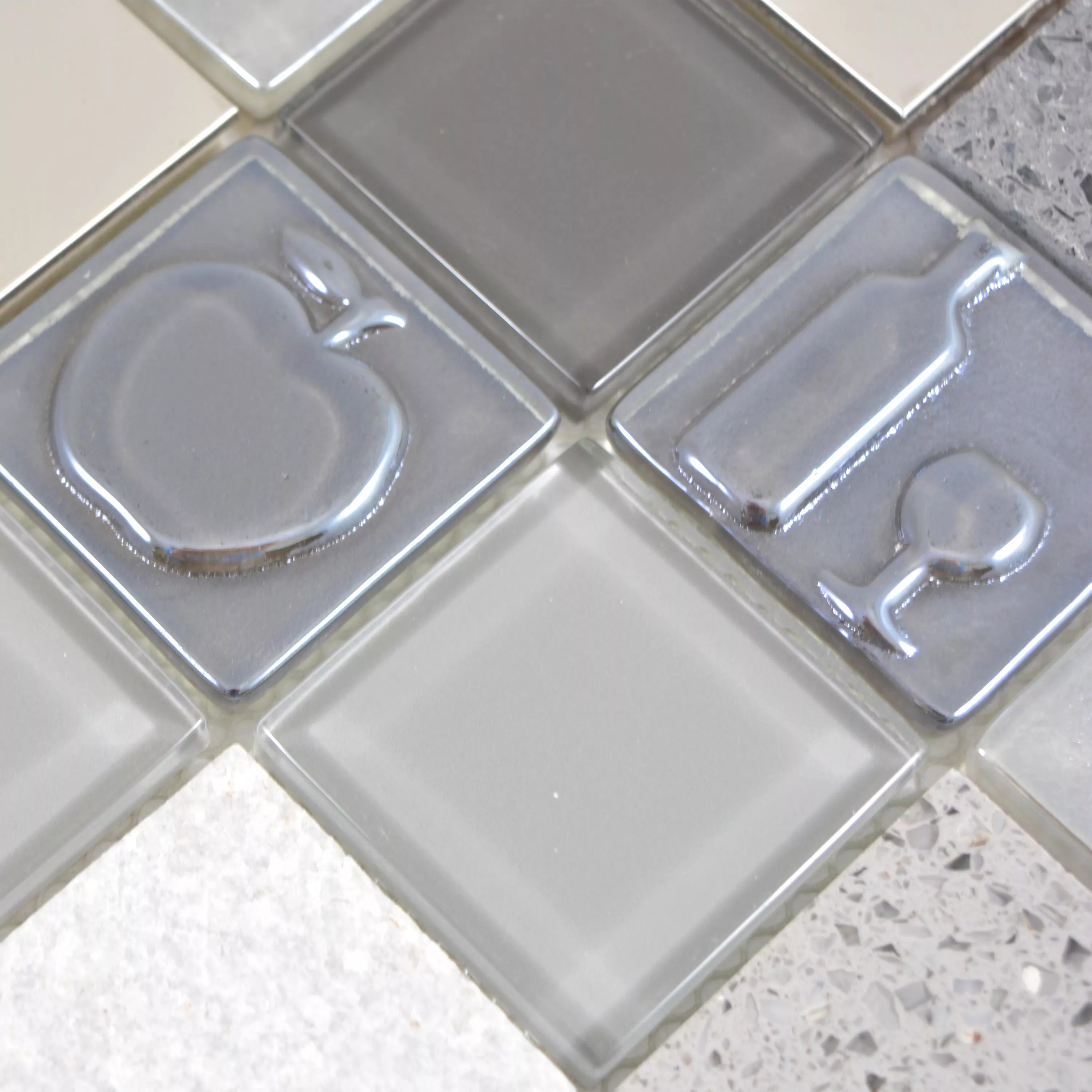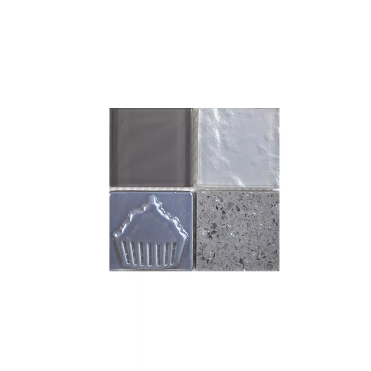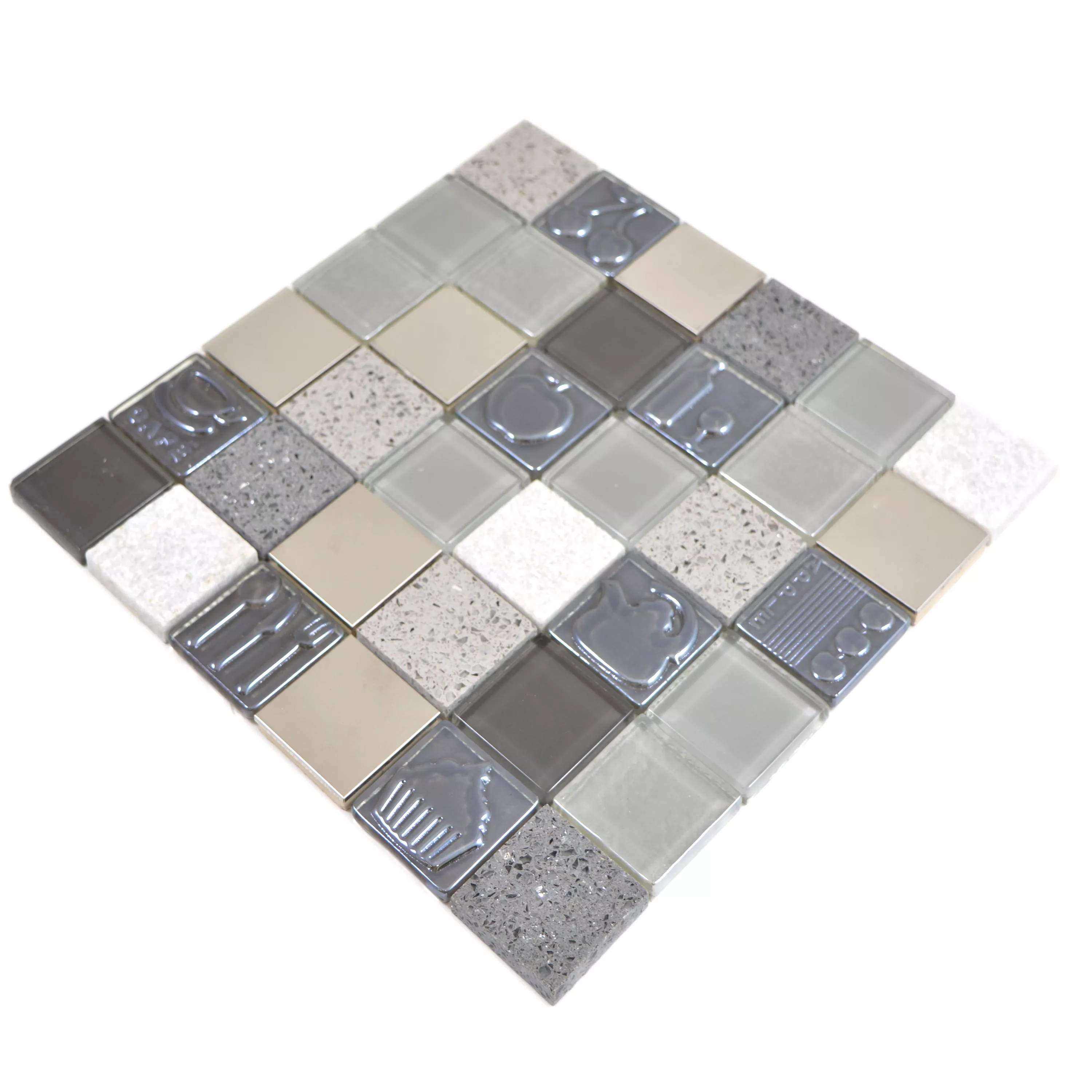 Muster von Glas Edelstahl Naturstein Mosaikfliesen Emporia Grau Silber