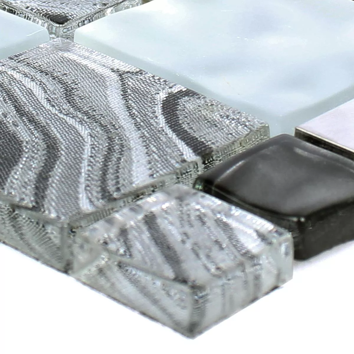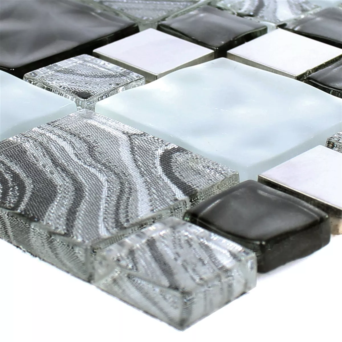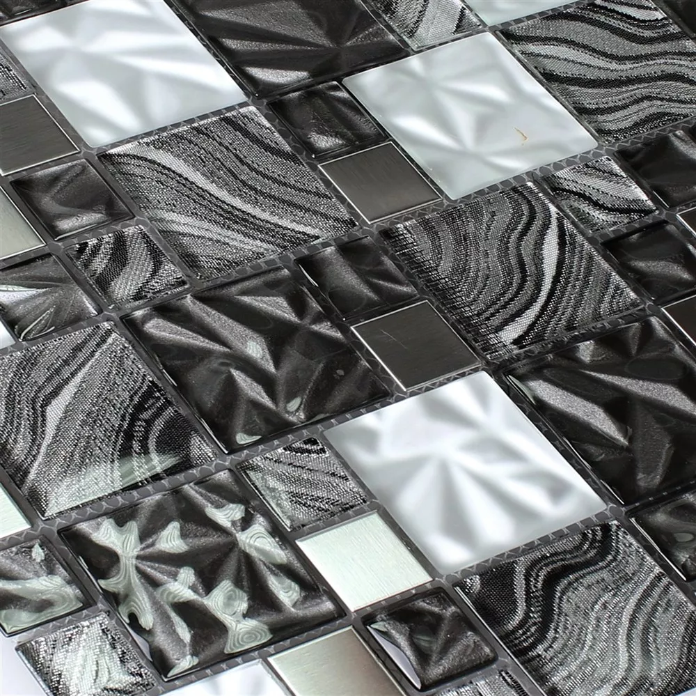 Muster von Glas Metall Edelstahl Mosaikfliesen Zadar Grau Schwarz