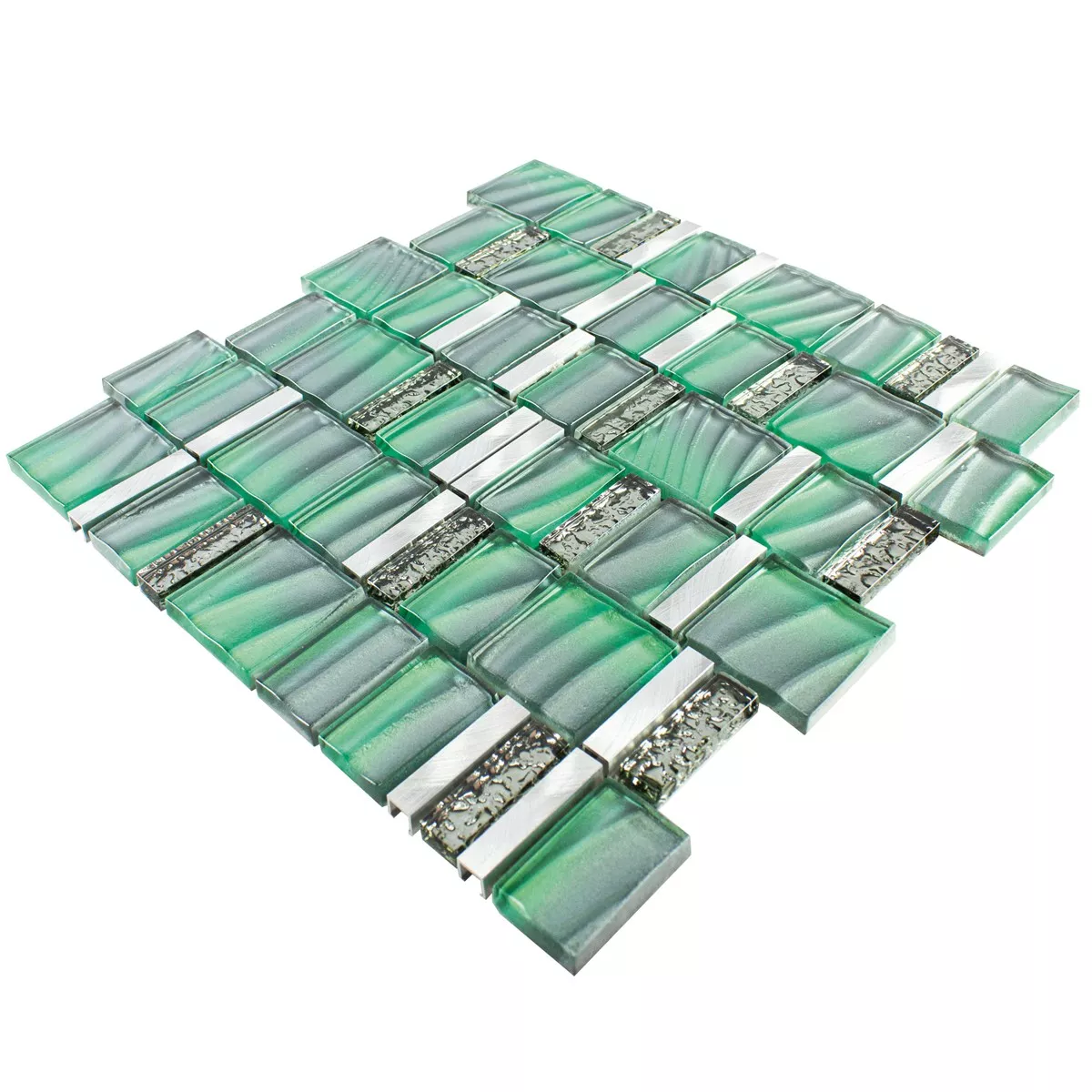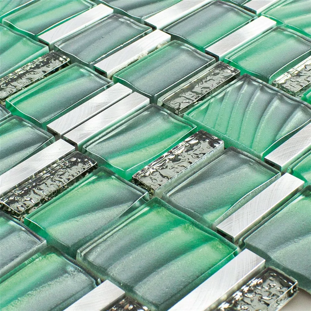 Muster von Glas Metall Mosaikfliesen Union Grün Silber