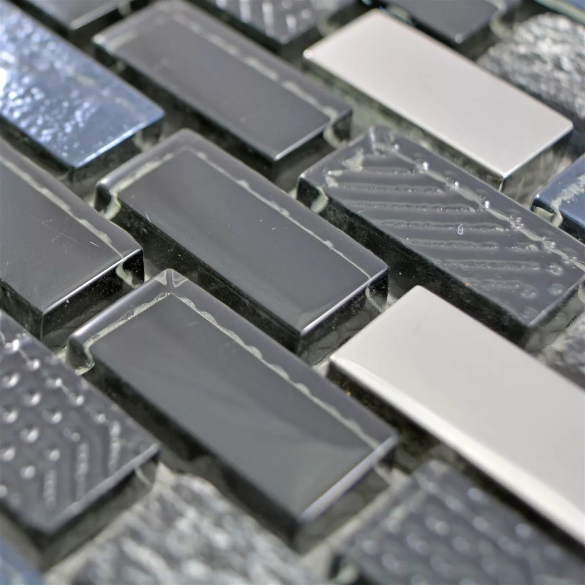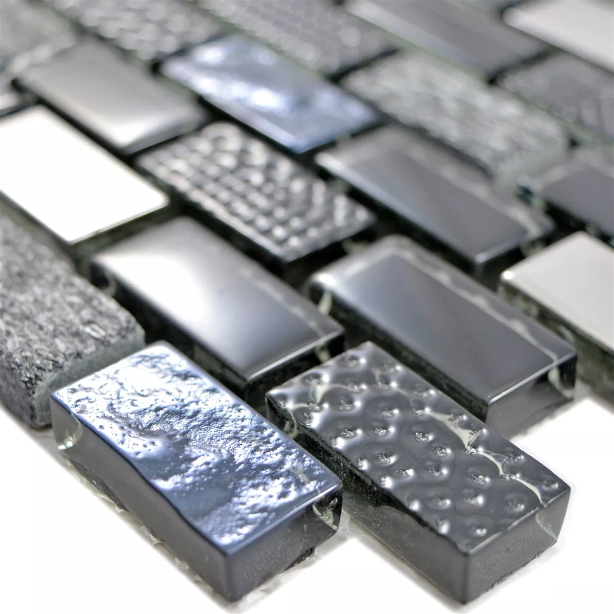 Muster von Glas Naturstein Mosaikfliesen Limona Schwarz
