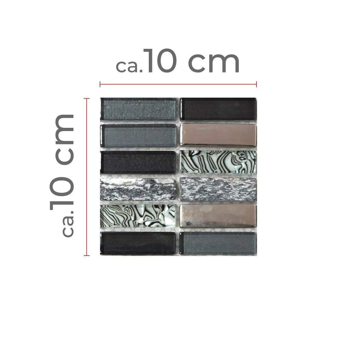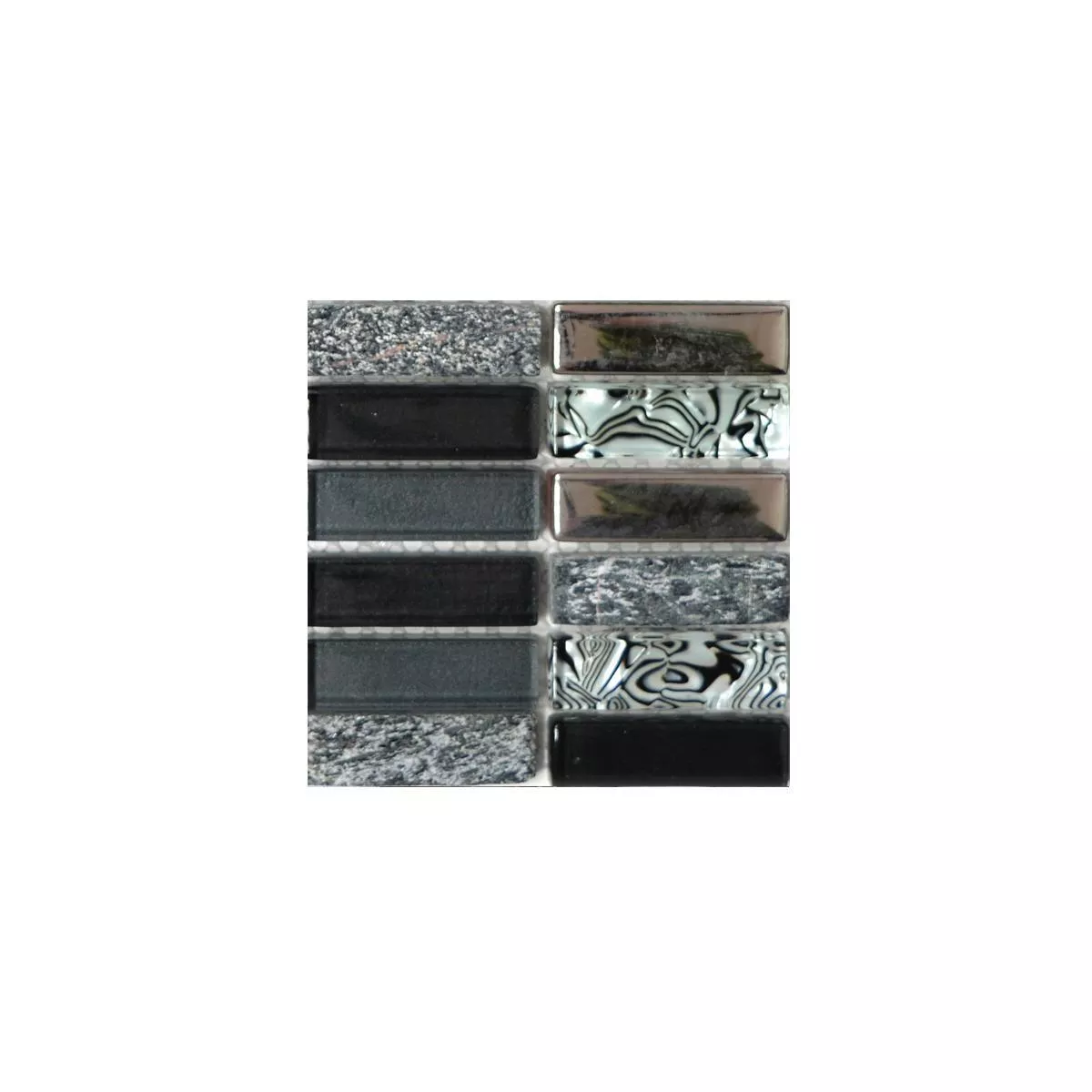 Muster von Glas Naturstein Mosaikfliesen Magia Schwarz Stäbchen