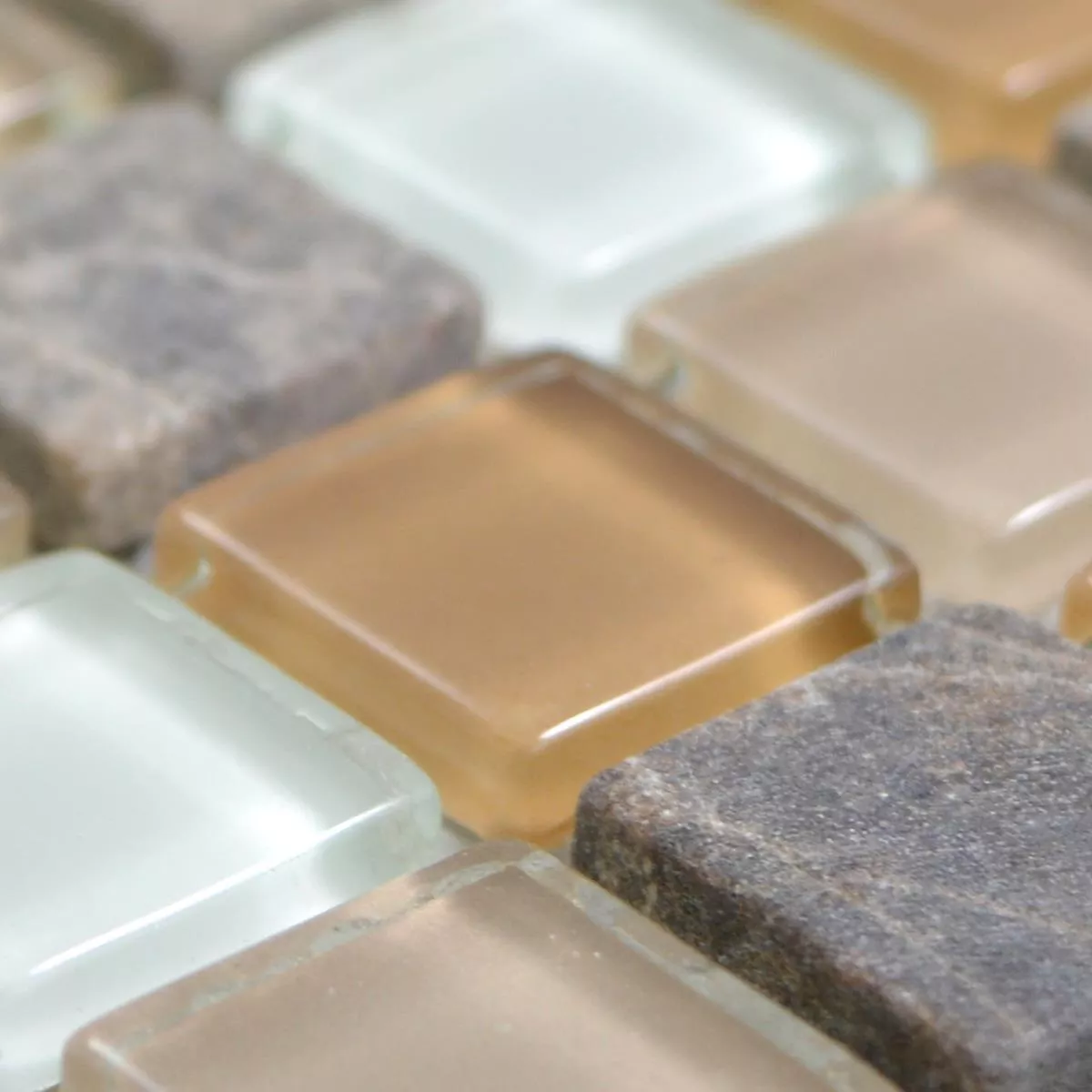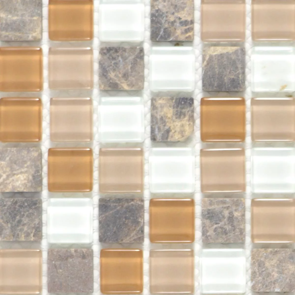 Muster von Glas Naturstein Mosaikfliesen Zekova Beige Braun Weiß