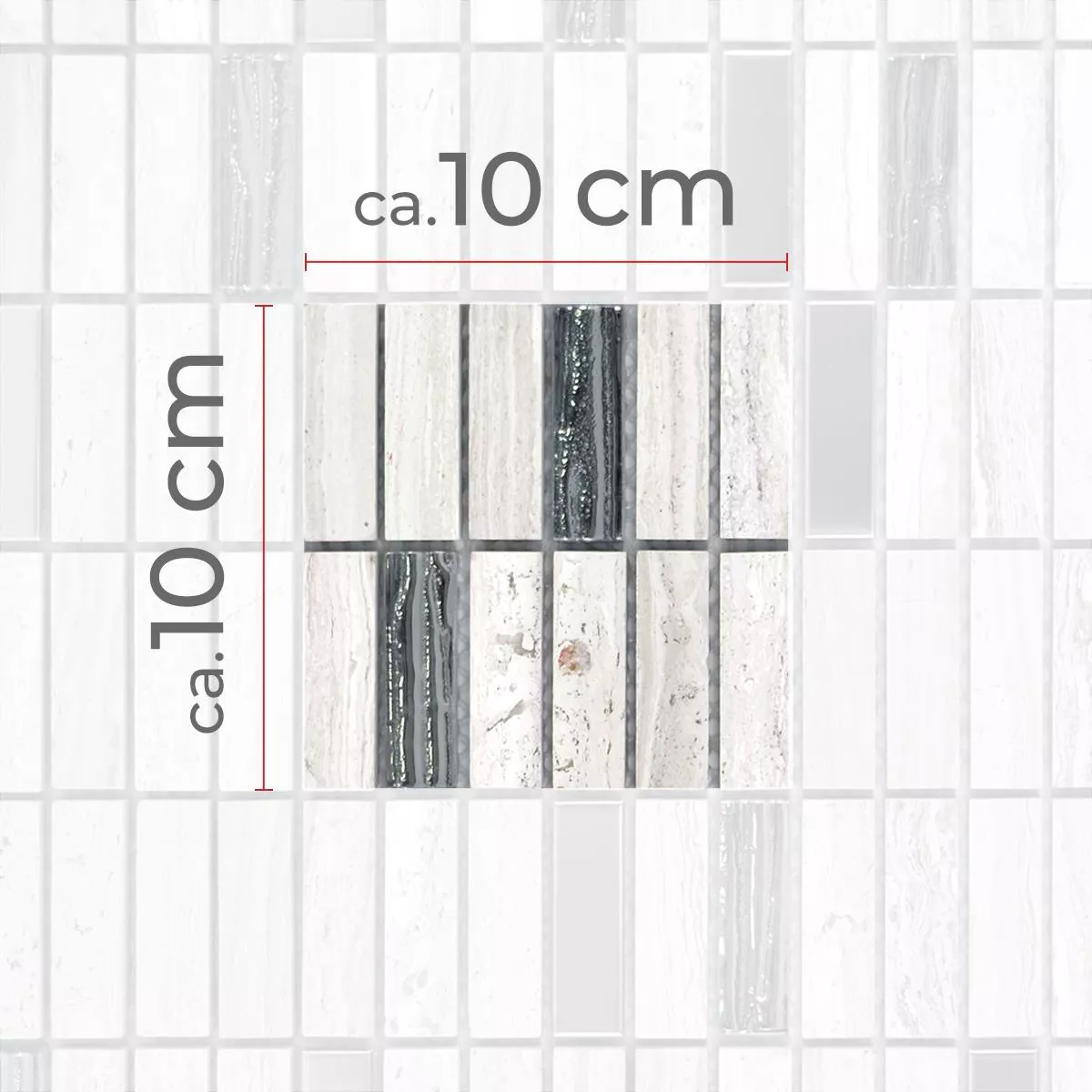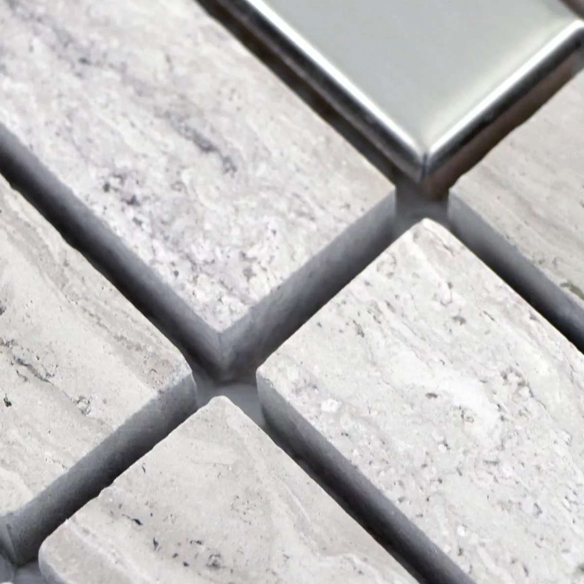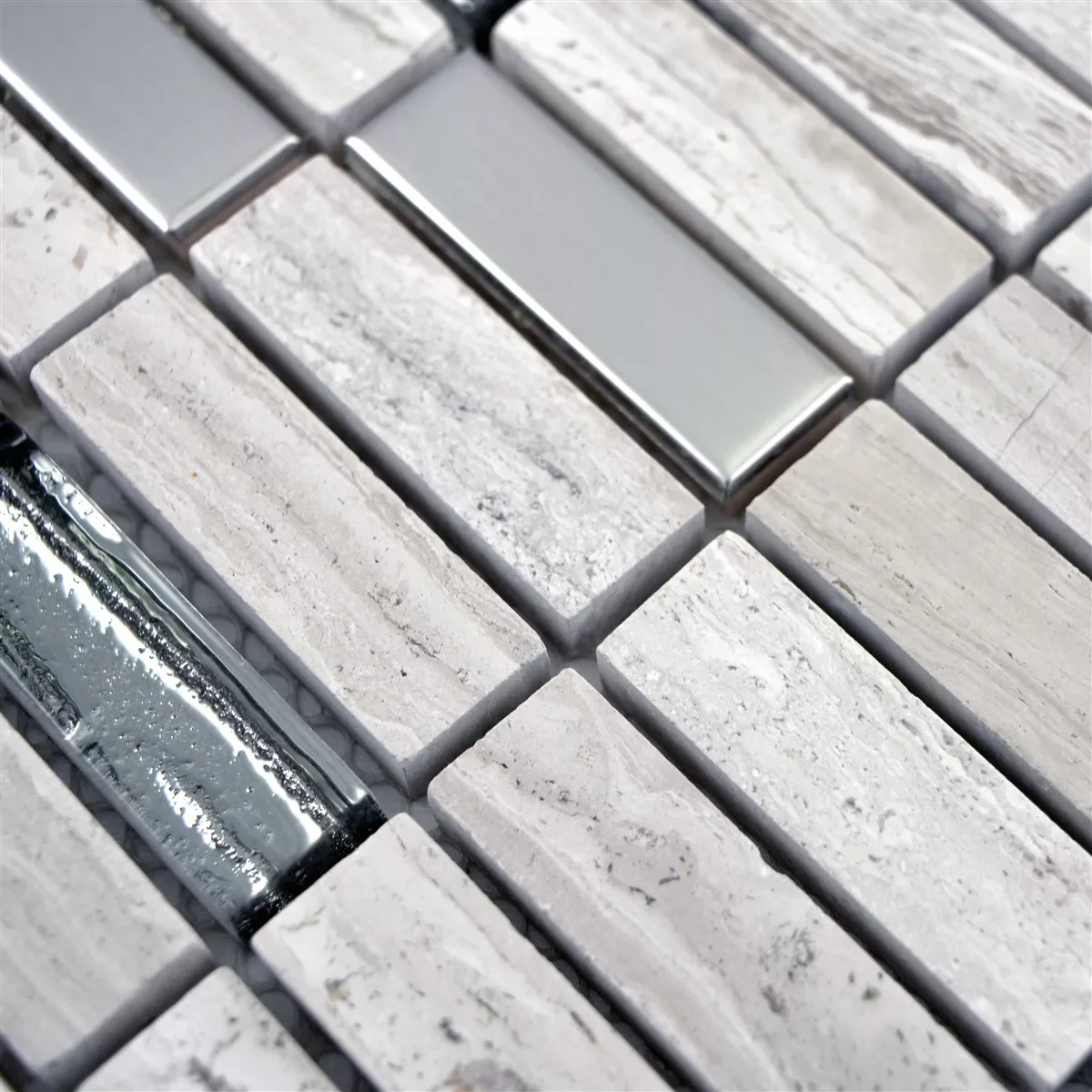 Muster von Glas Stein Stahl Mosaikfliesen Elektra Grau Stäbchen