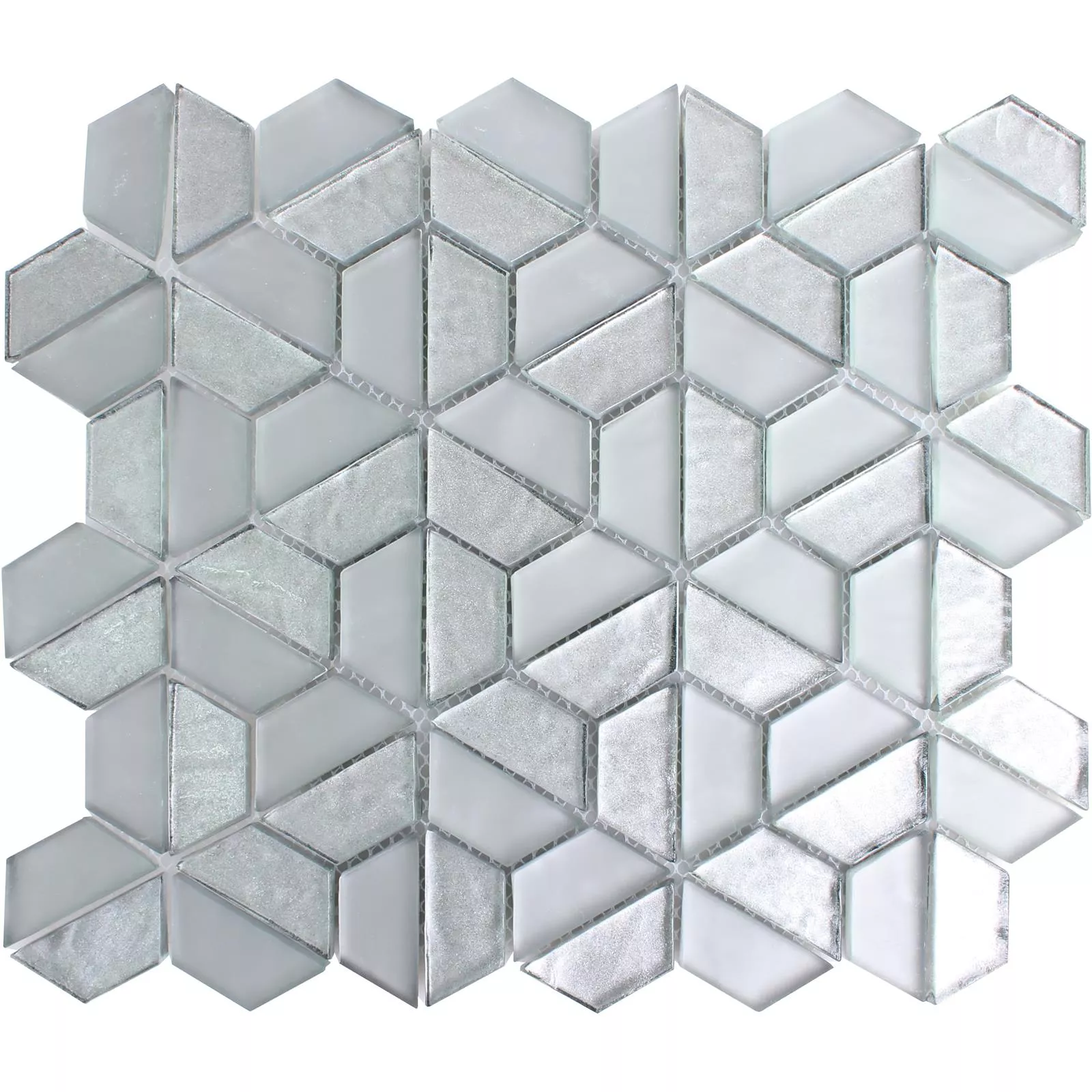 Muster von Glasmosaik Fliesen Alaaddin Hexagon Silber