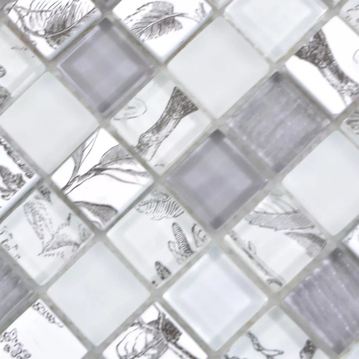 Muster von Glasmosaik Fliesen Cornelia Retrooptik Weiß Grau