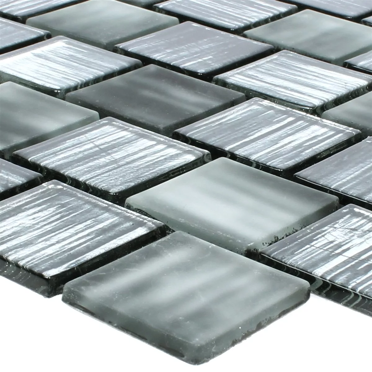 Muster von Glasmosaik Fliesen Lanzarote Schwarz Schmal