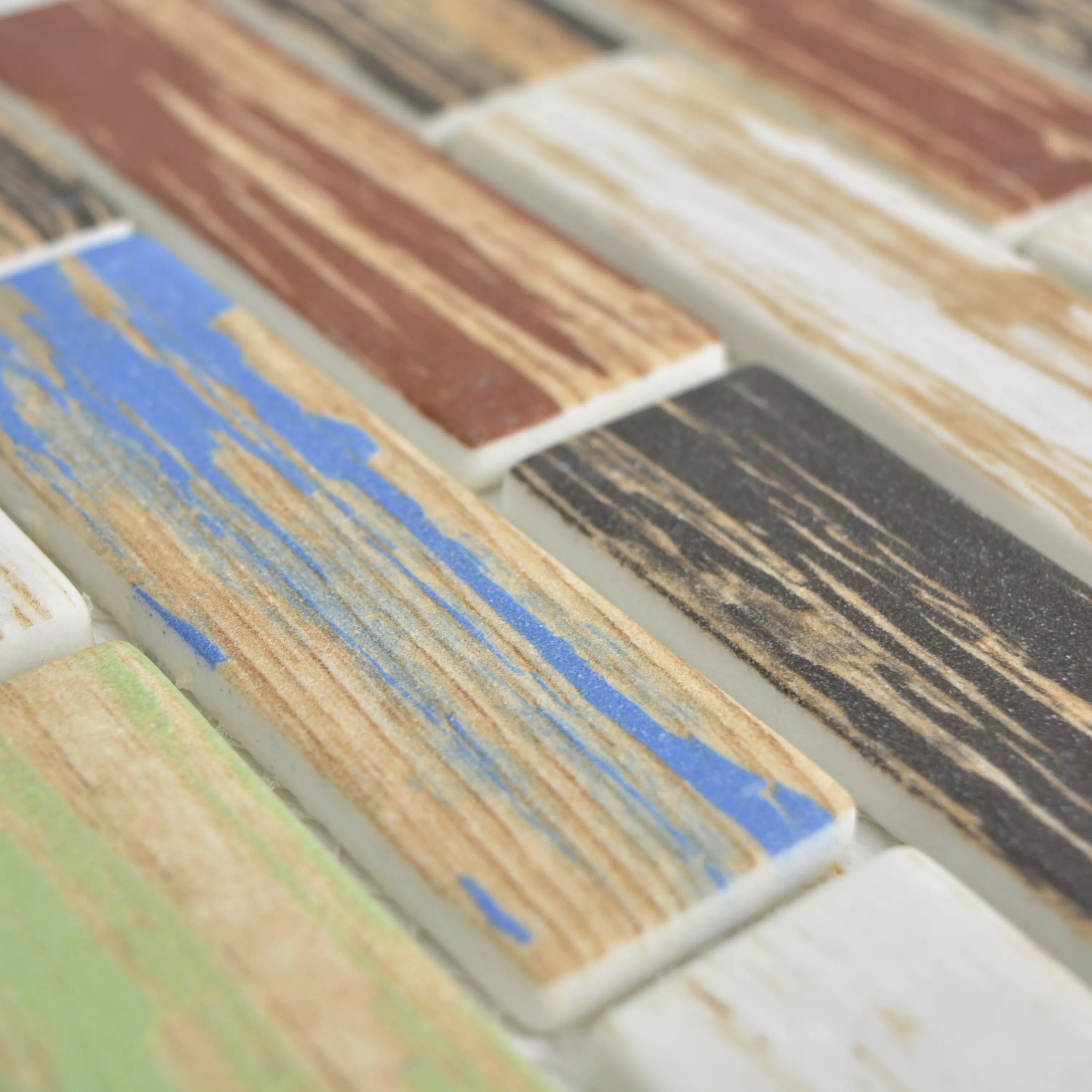 Muster von Glasmosaik Fliesen Lunatic Holzoptik Bunt