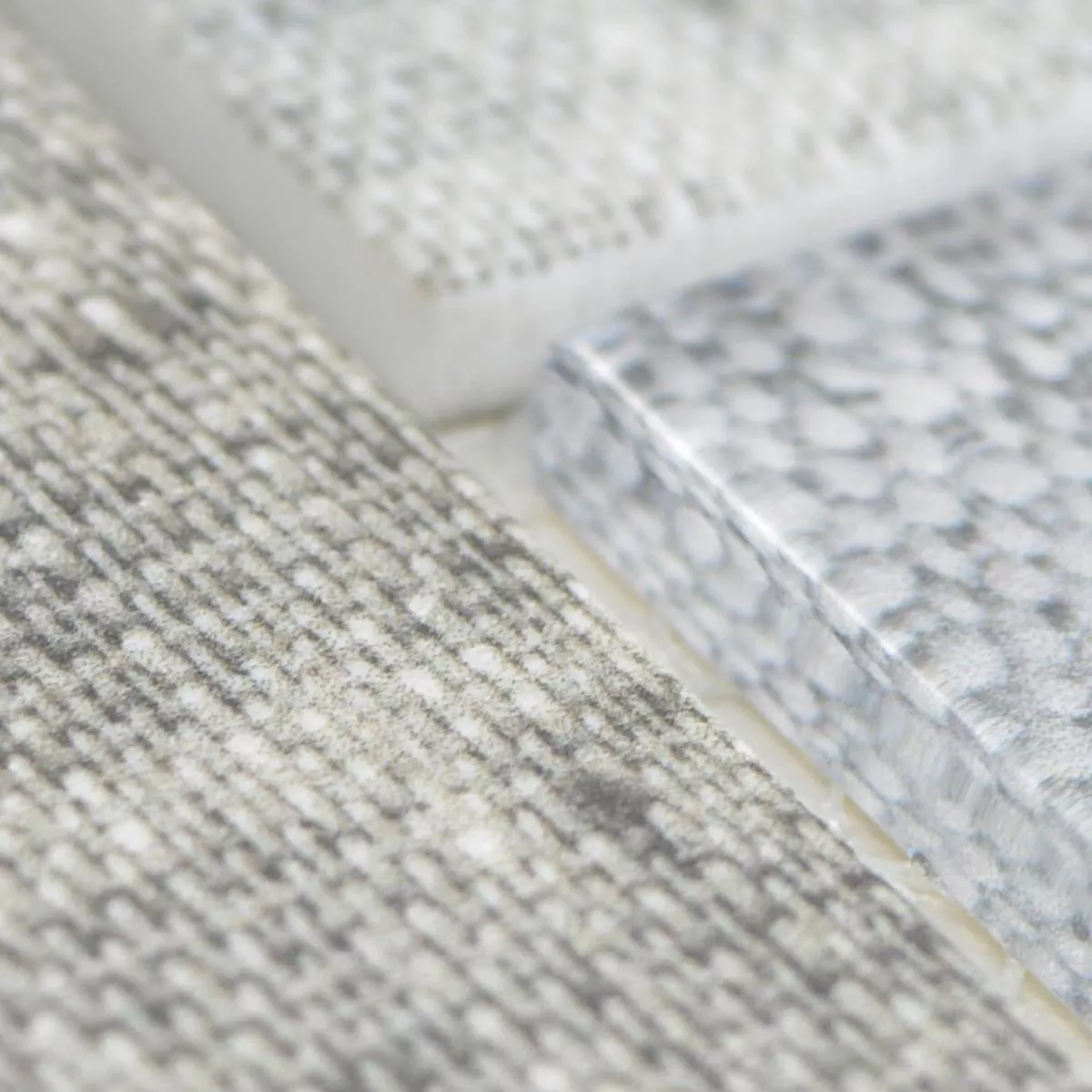 Muster von Glasmosaik Fliesen Lyonel Textil Optik Brick Grau
