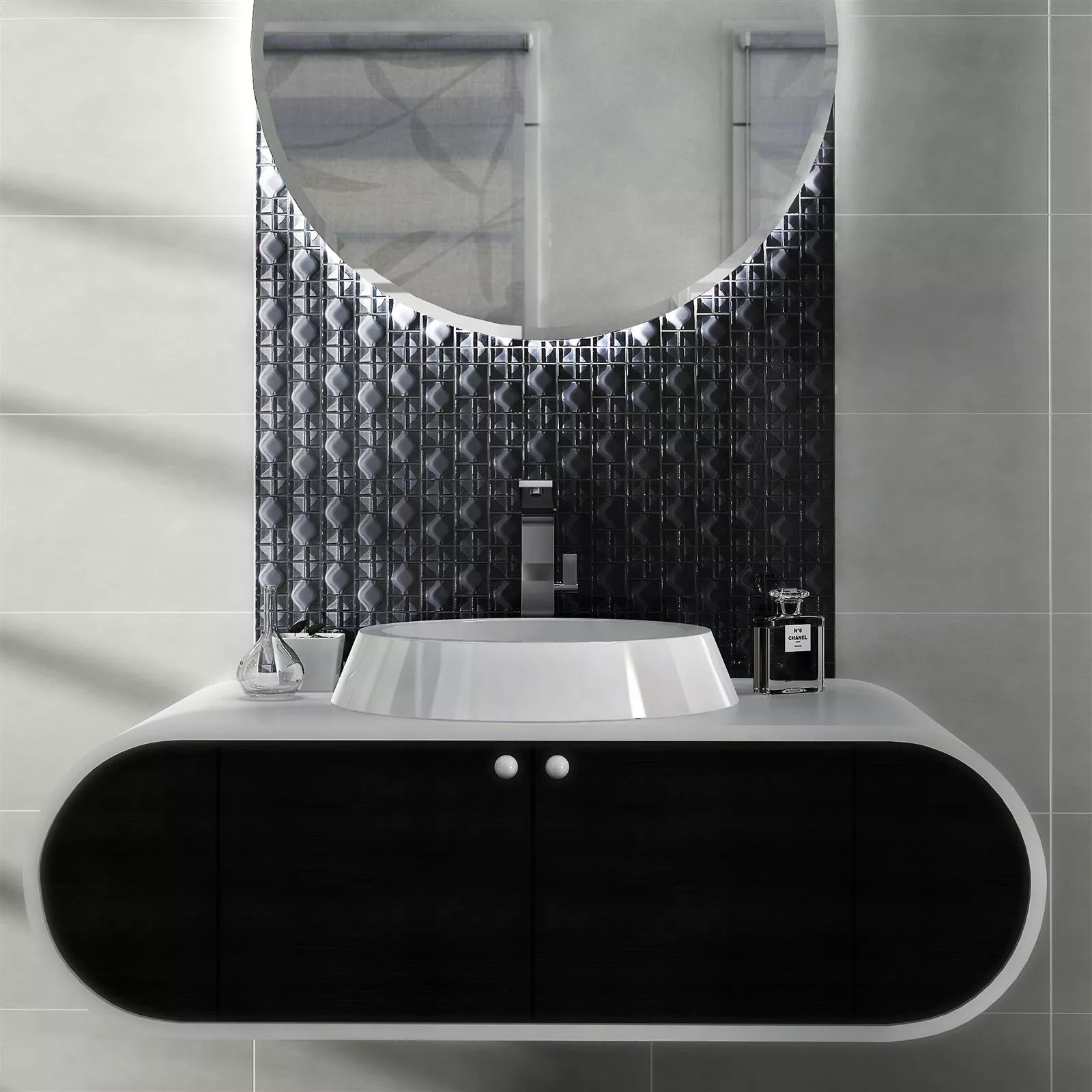 Muster von Glasmosaik Fliesen Nokta Schwarz Grau 3D