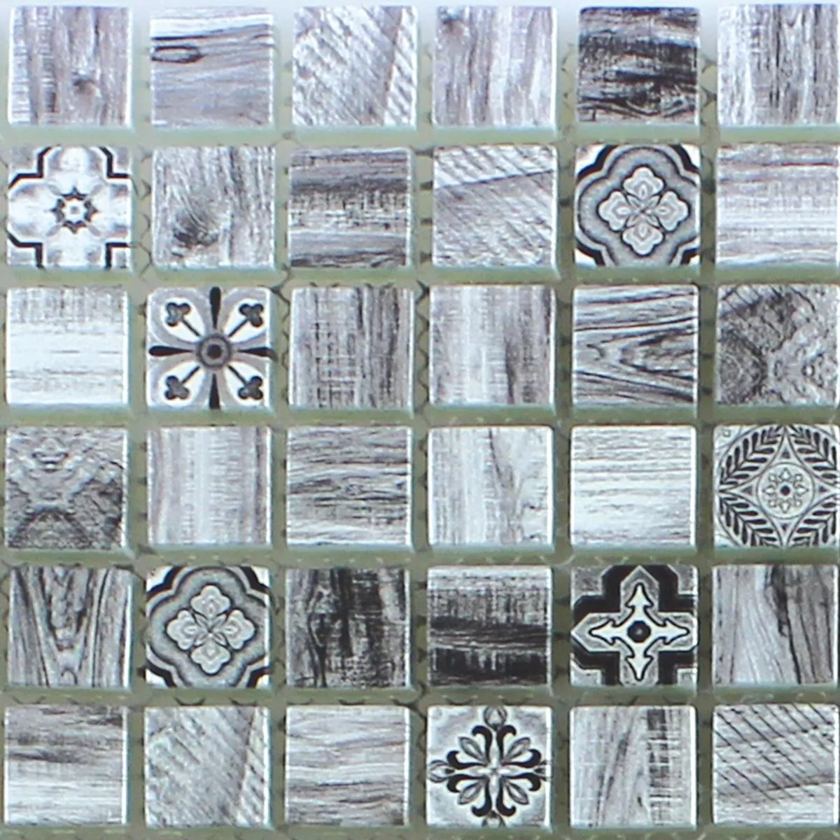 Muster von Glasmosaik Holzoptik Fliesen Vision Grau