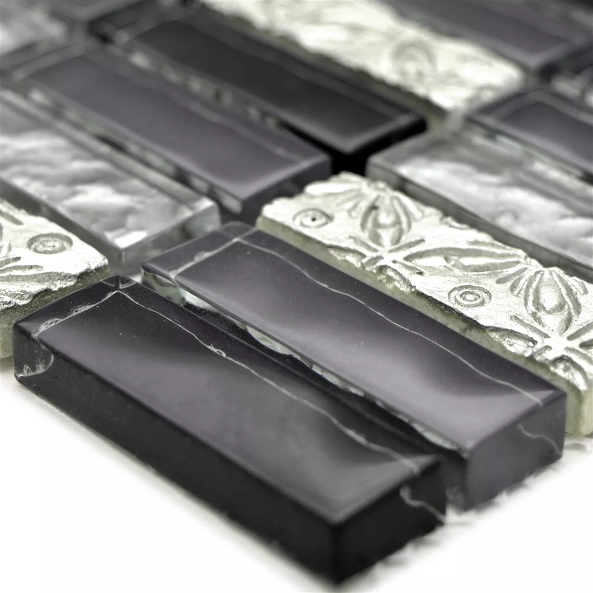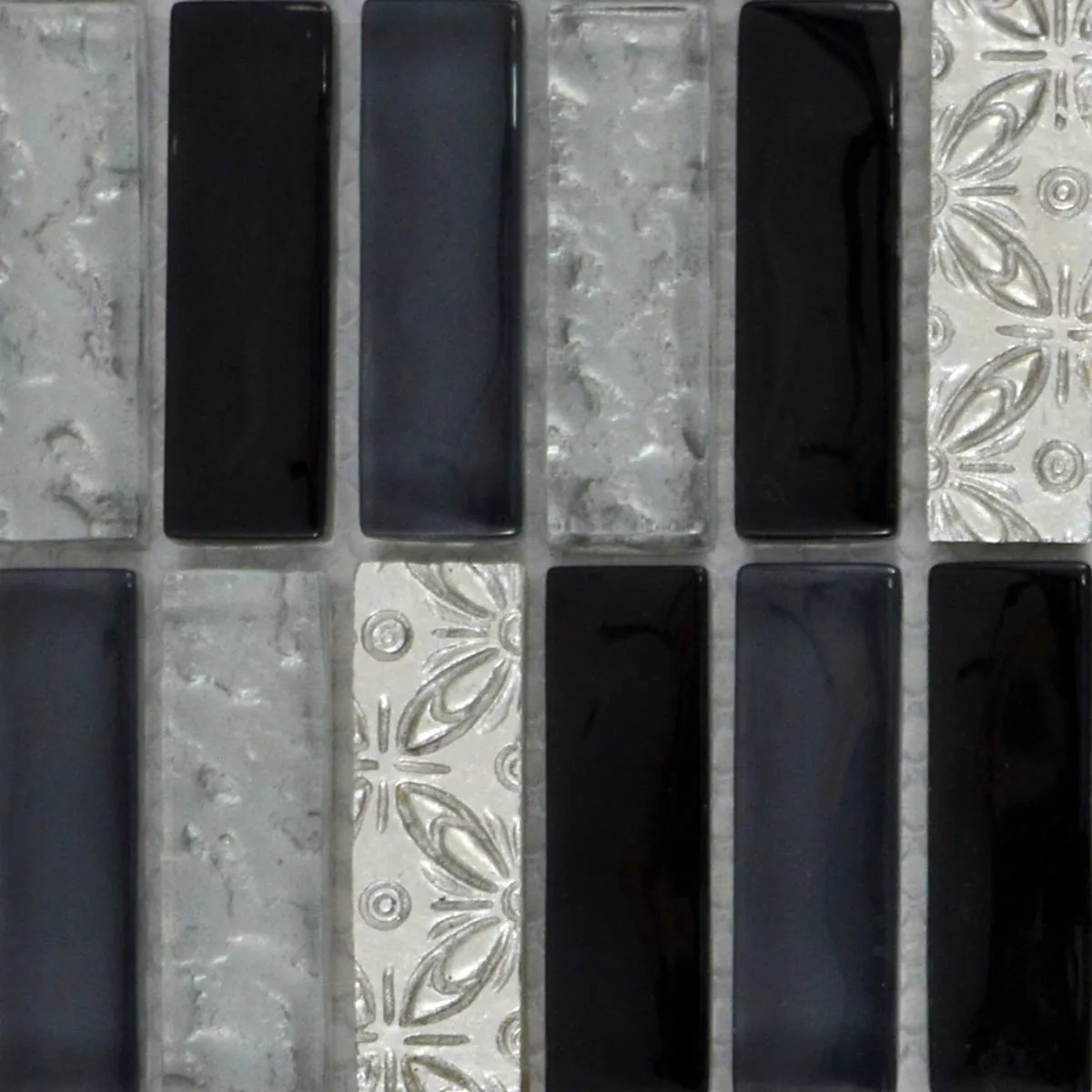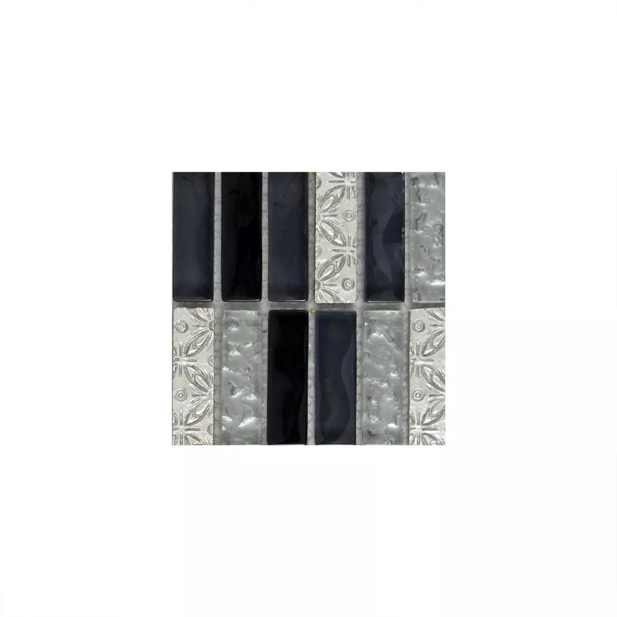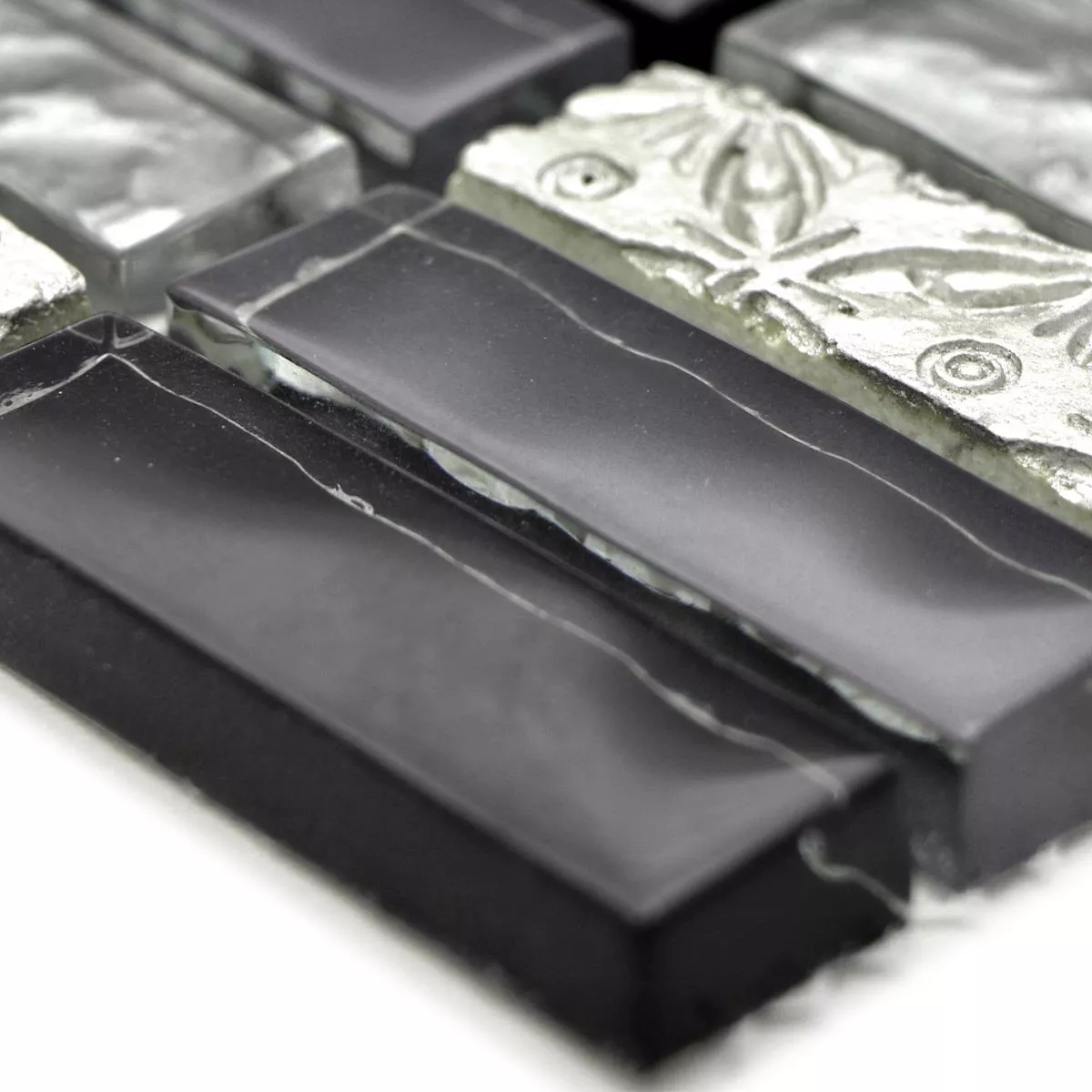 Muster von Glasmosaik Natursteinfliesen Conchita Schwarz Silber