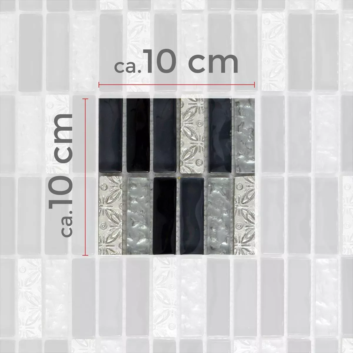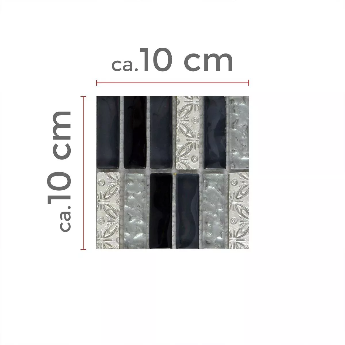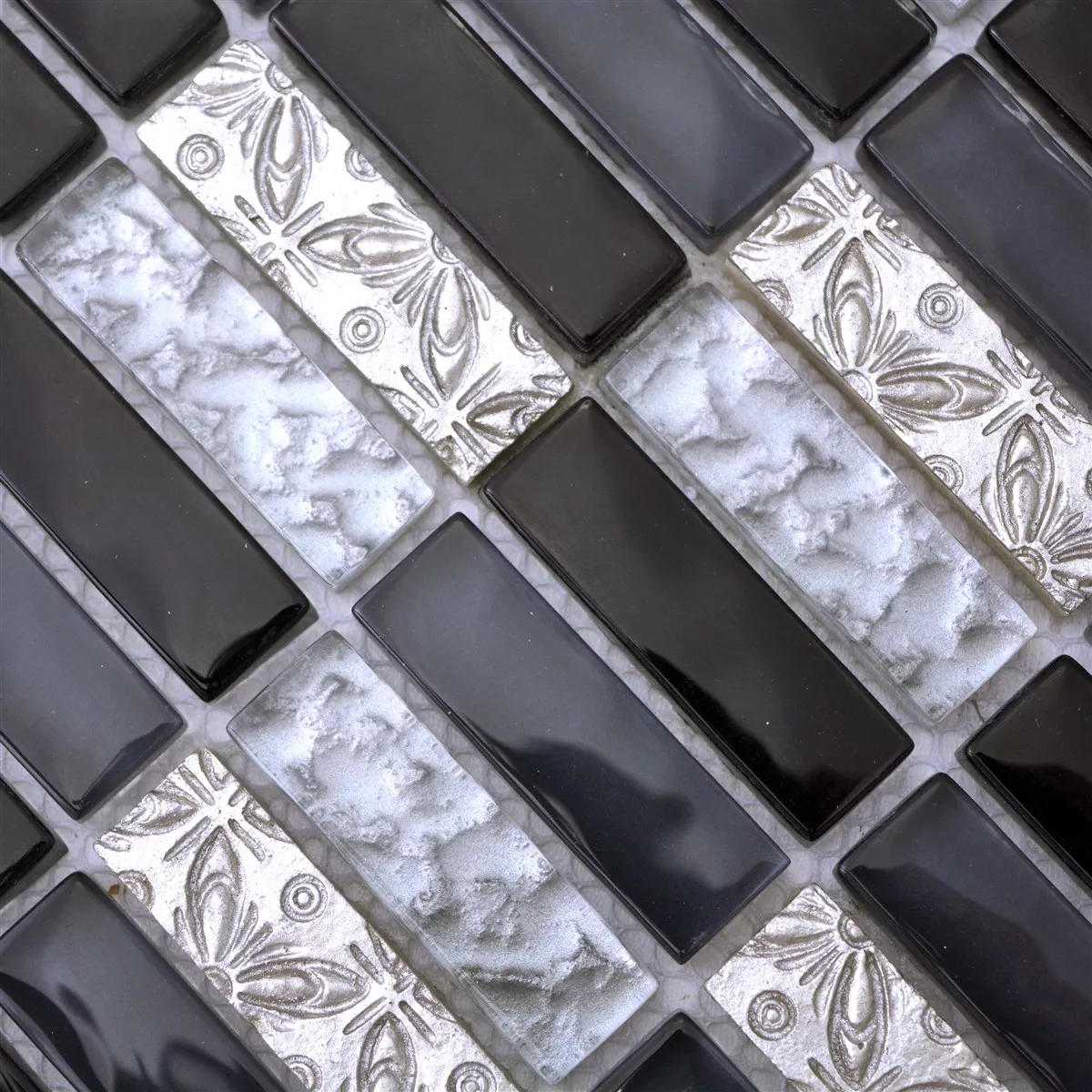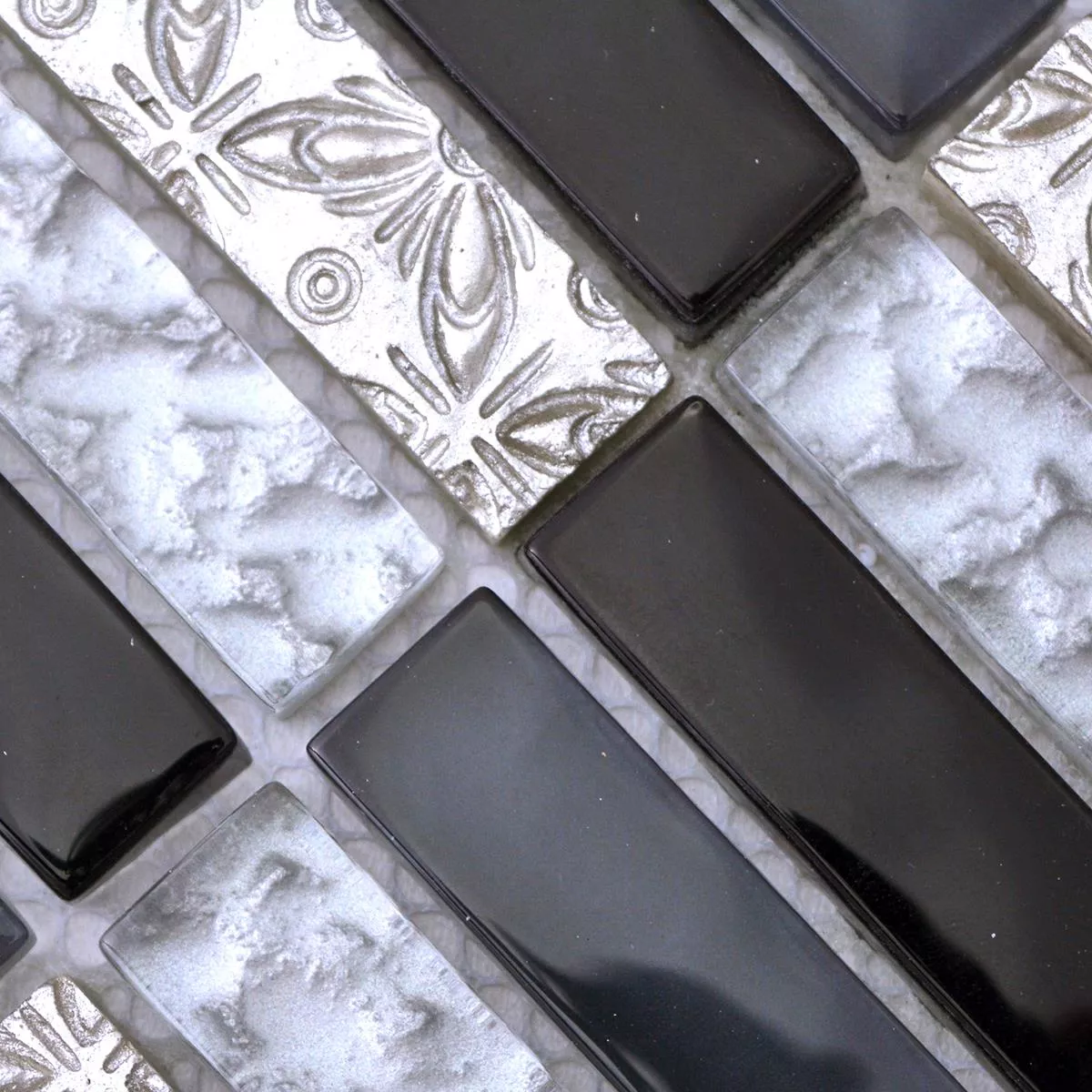 Muster von Glasmosaik Natursteinfliesen Conchita Schwarz Silber