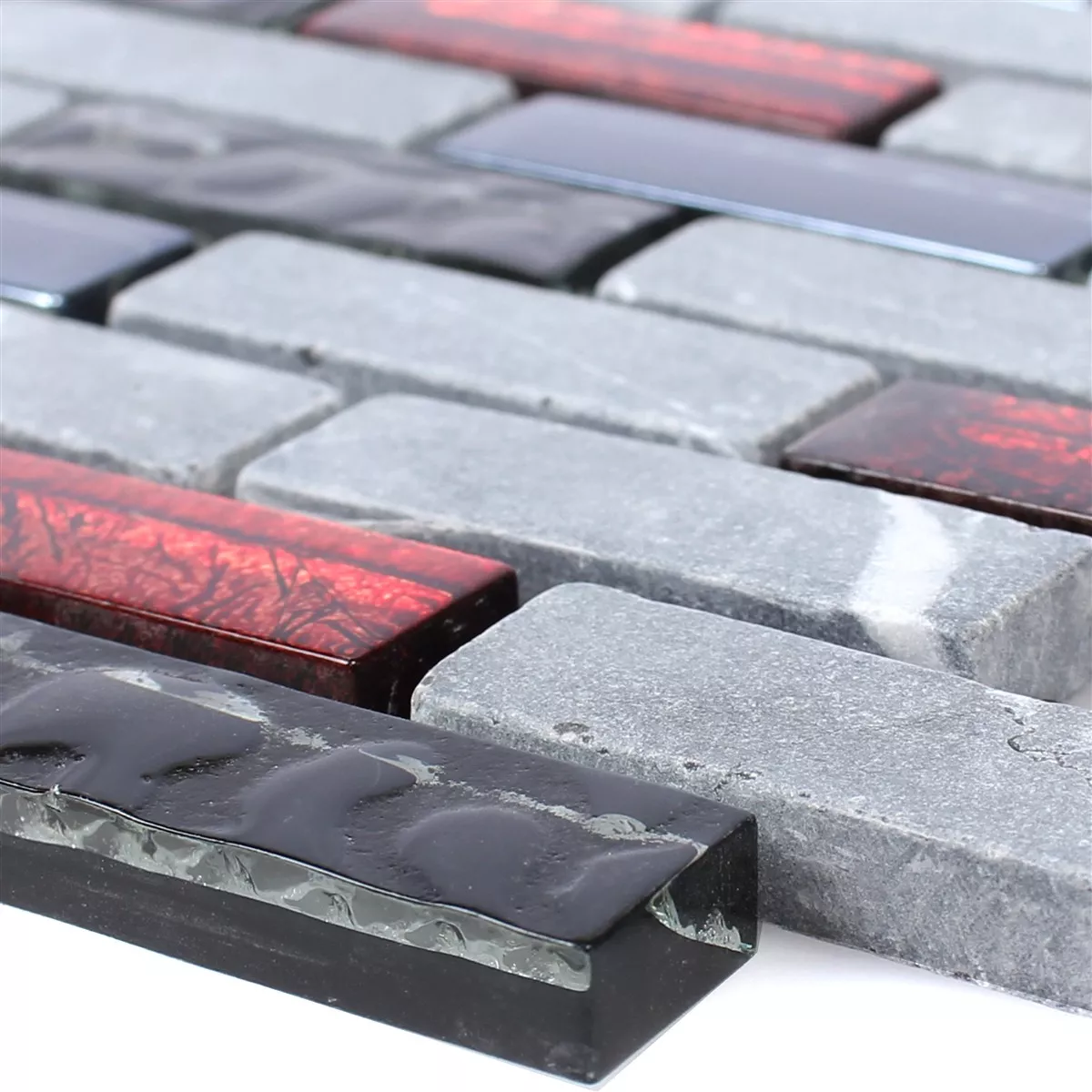 Muster von Glasmosaik Natursteinfliesen Marley Schwarz Rot Grau