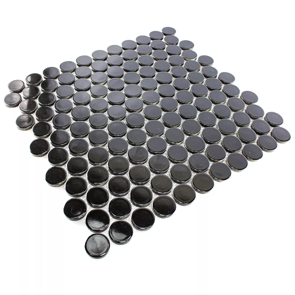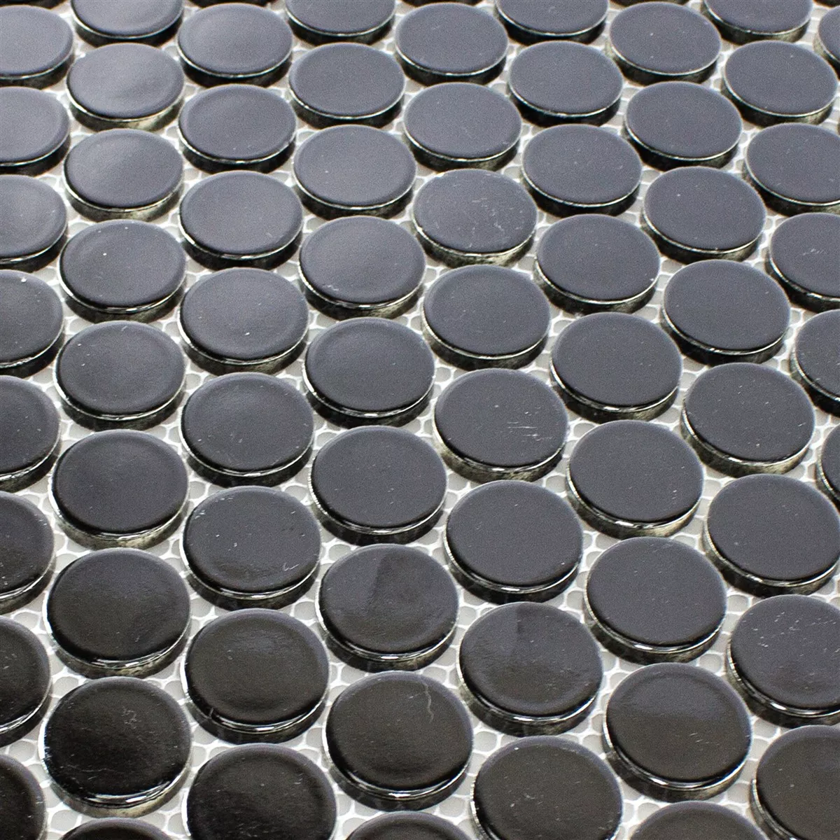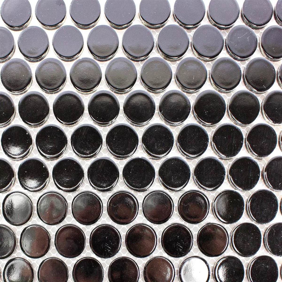 Muster von Keramik Knopf Mosaik Fliesen Harlingen Schwarz Glänzend