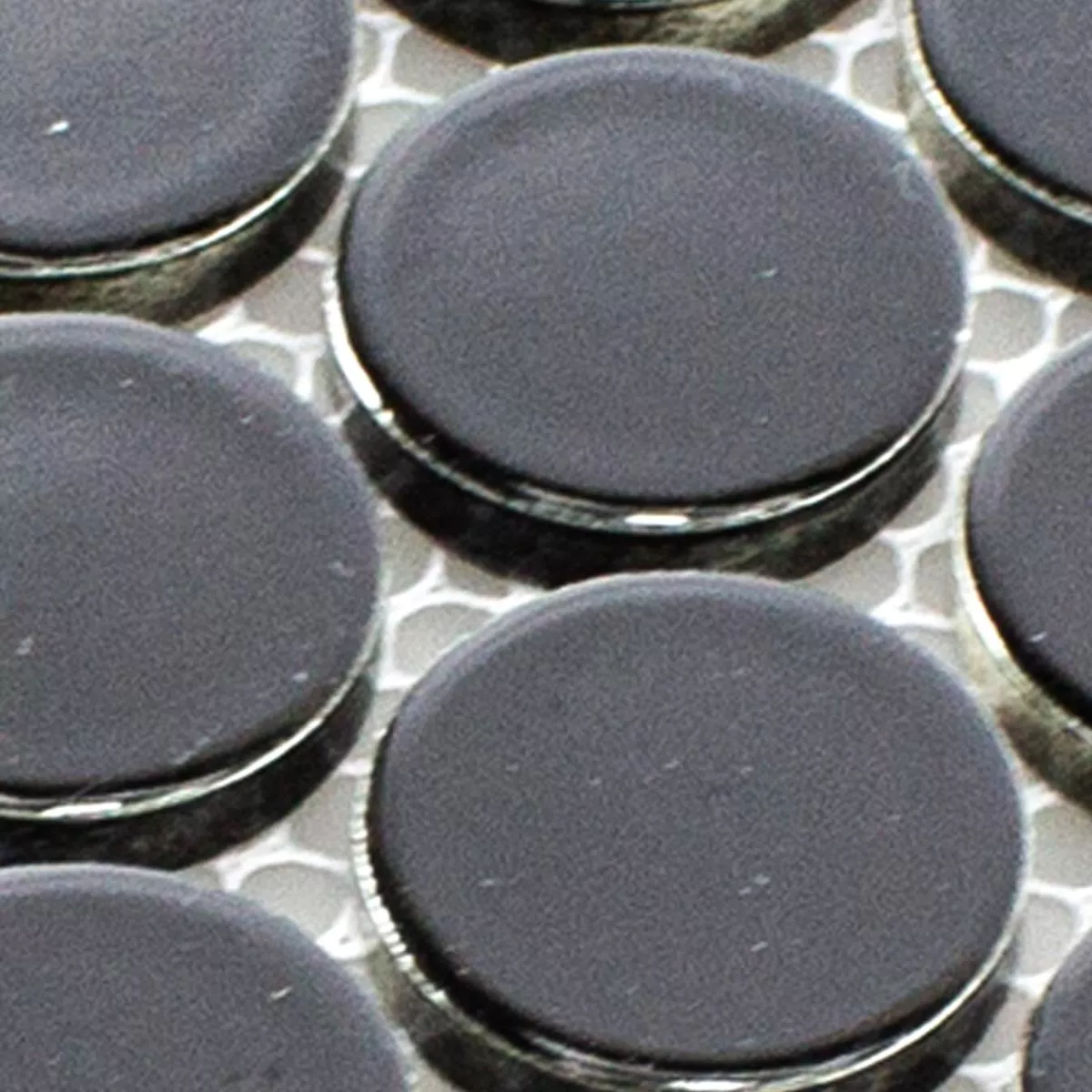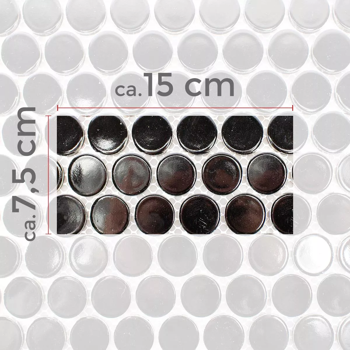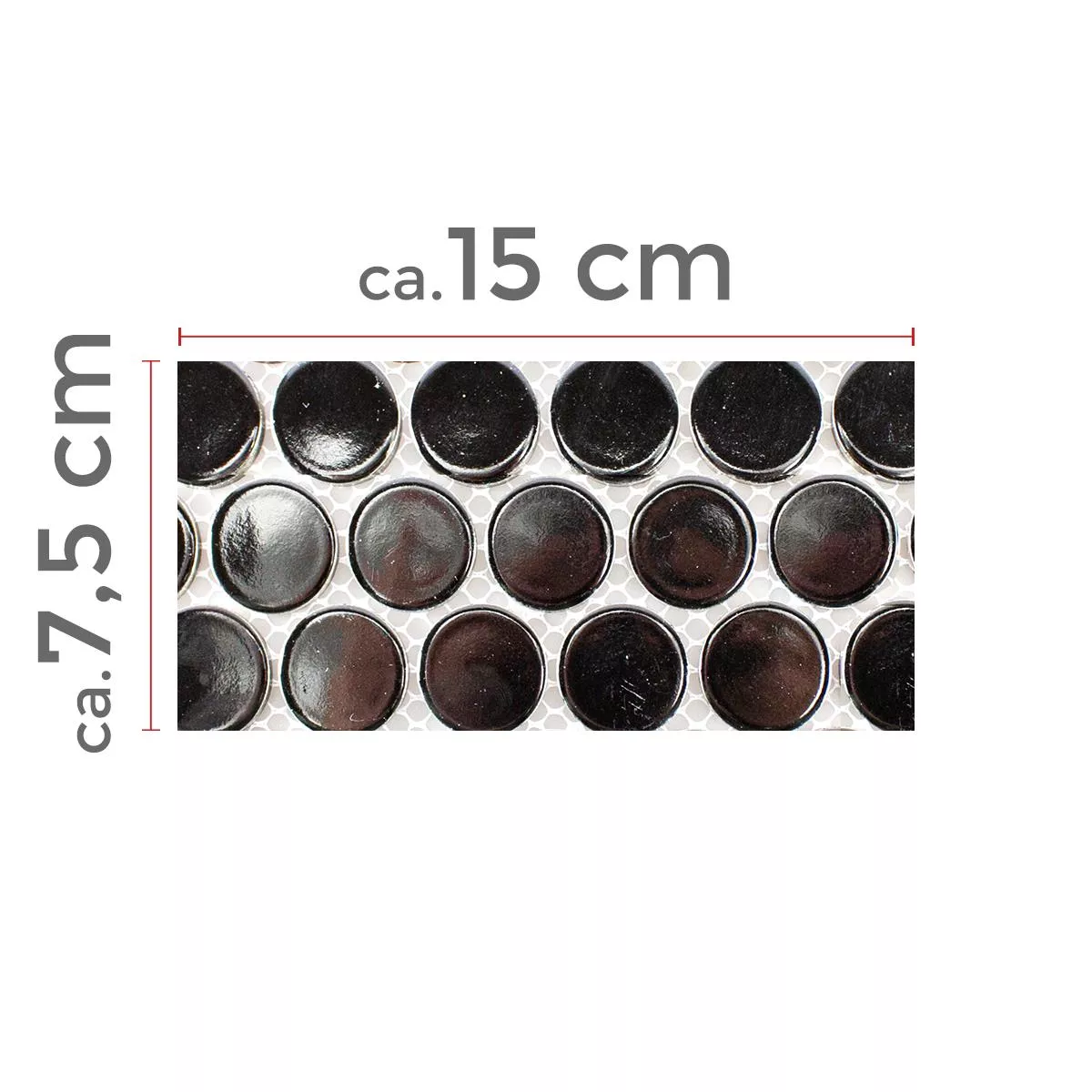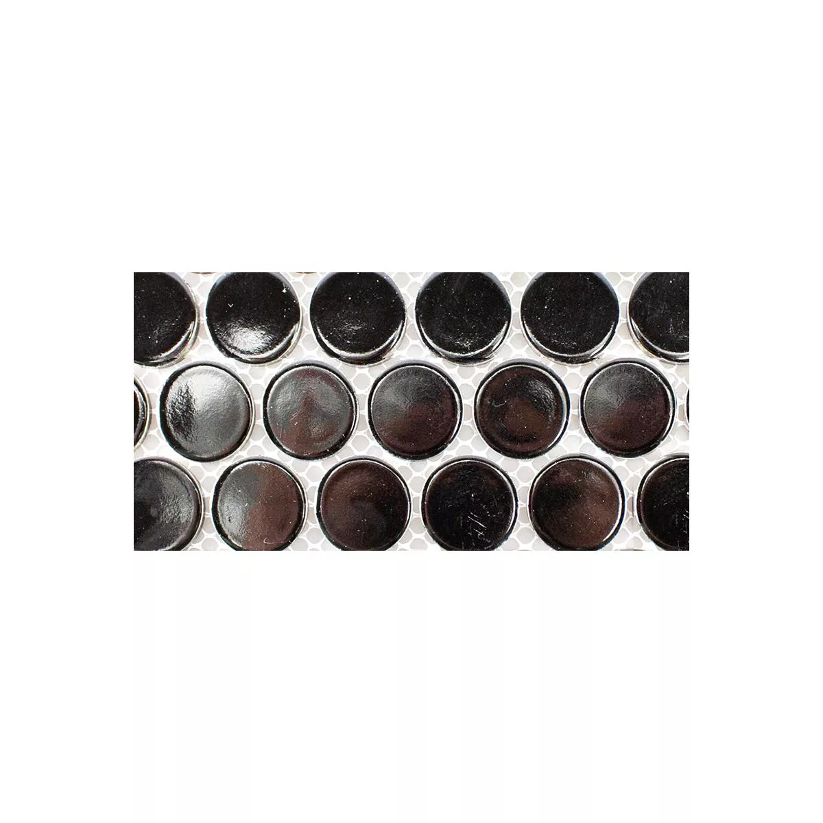 Muster von Keramik Knopf Mosaik Fliesen Harlingen Schwarz Glänzend