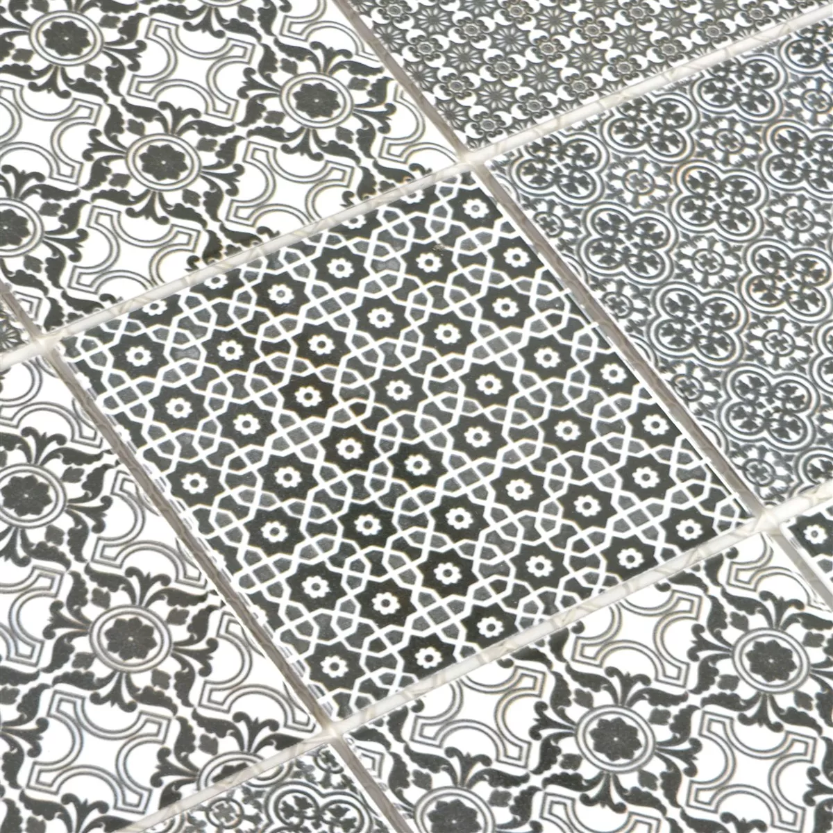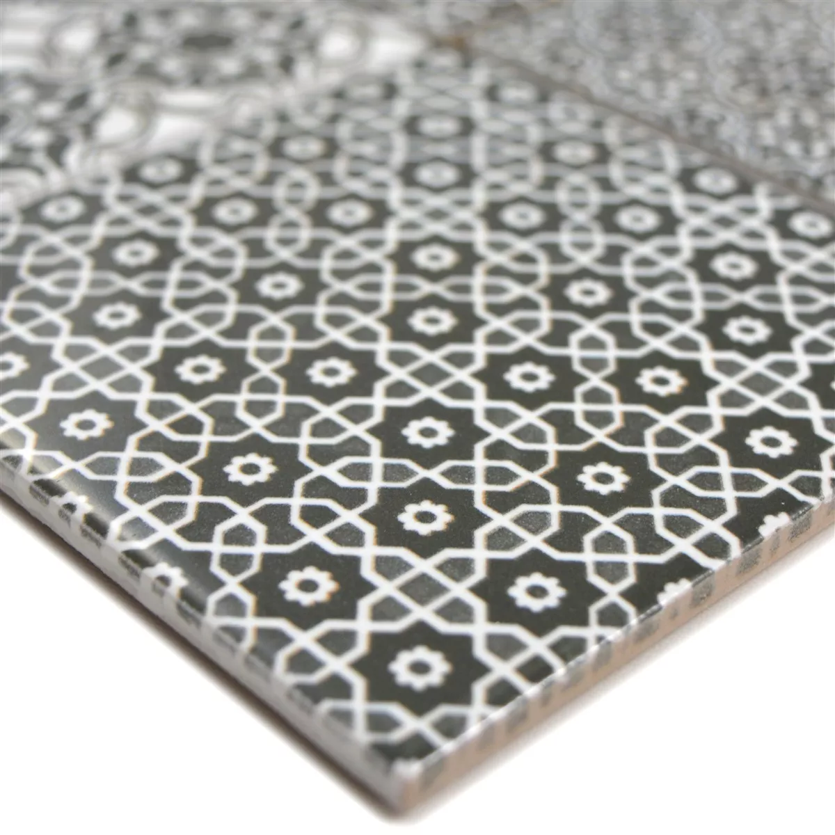 Muster von Keramik Mosaikfliesen Daymion Retrooptik Quadrat Schwarz