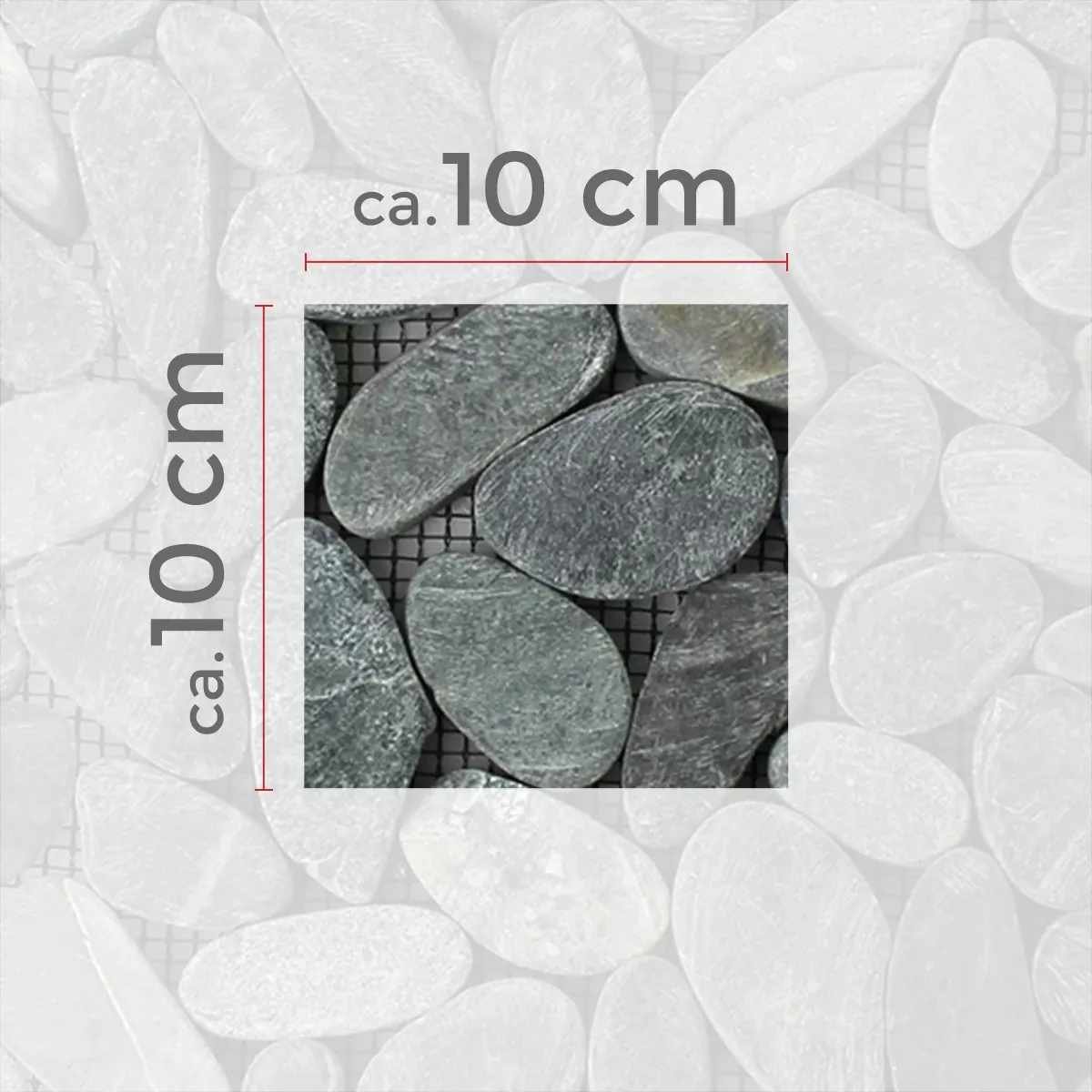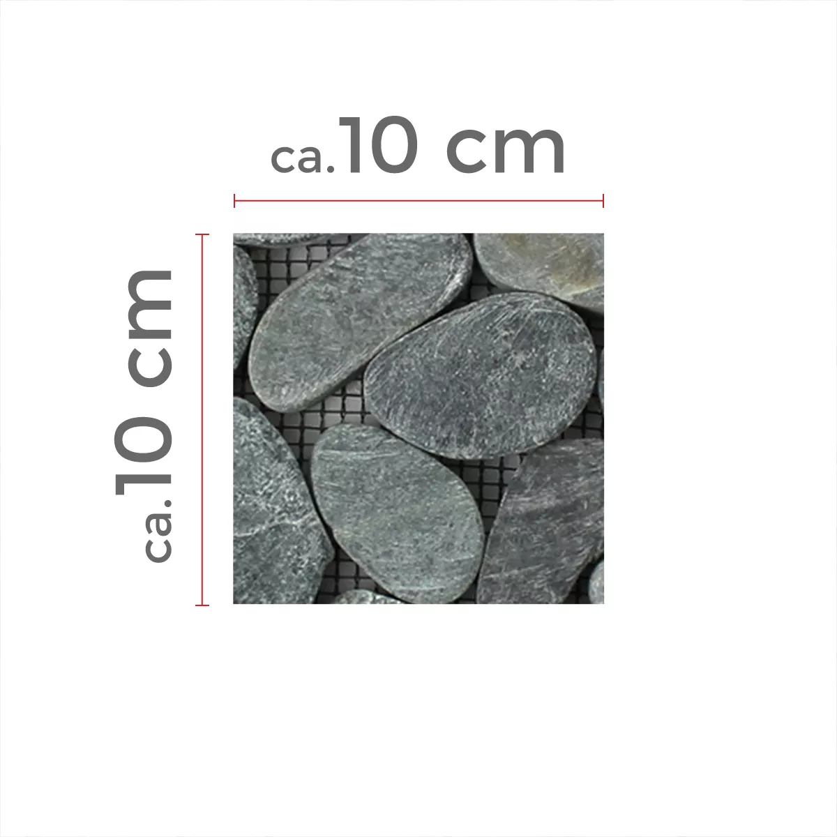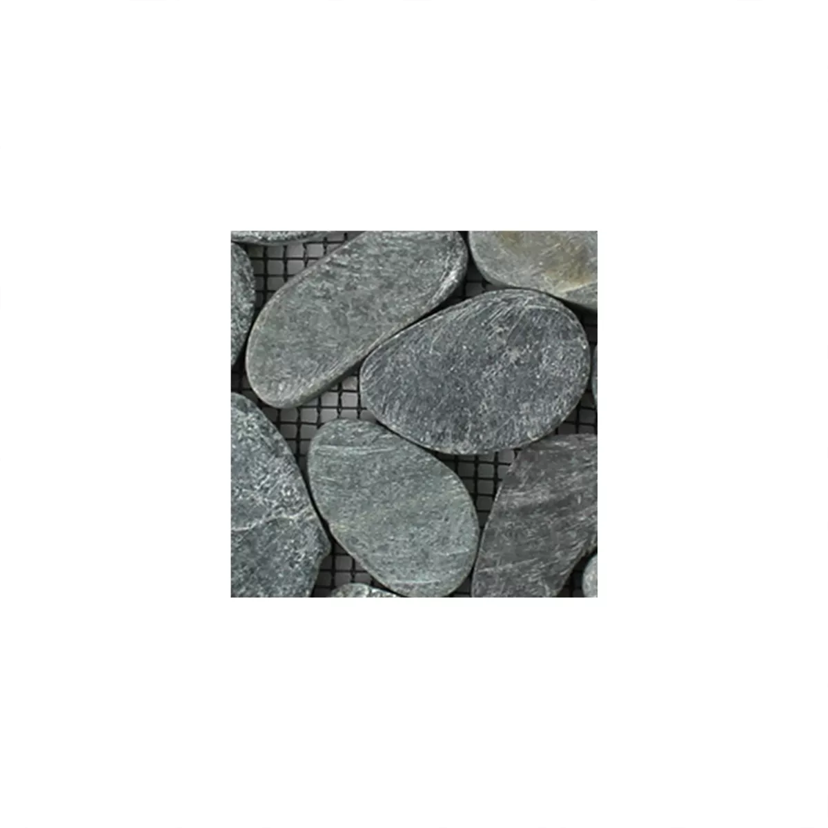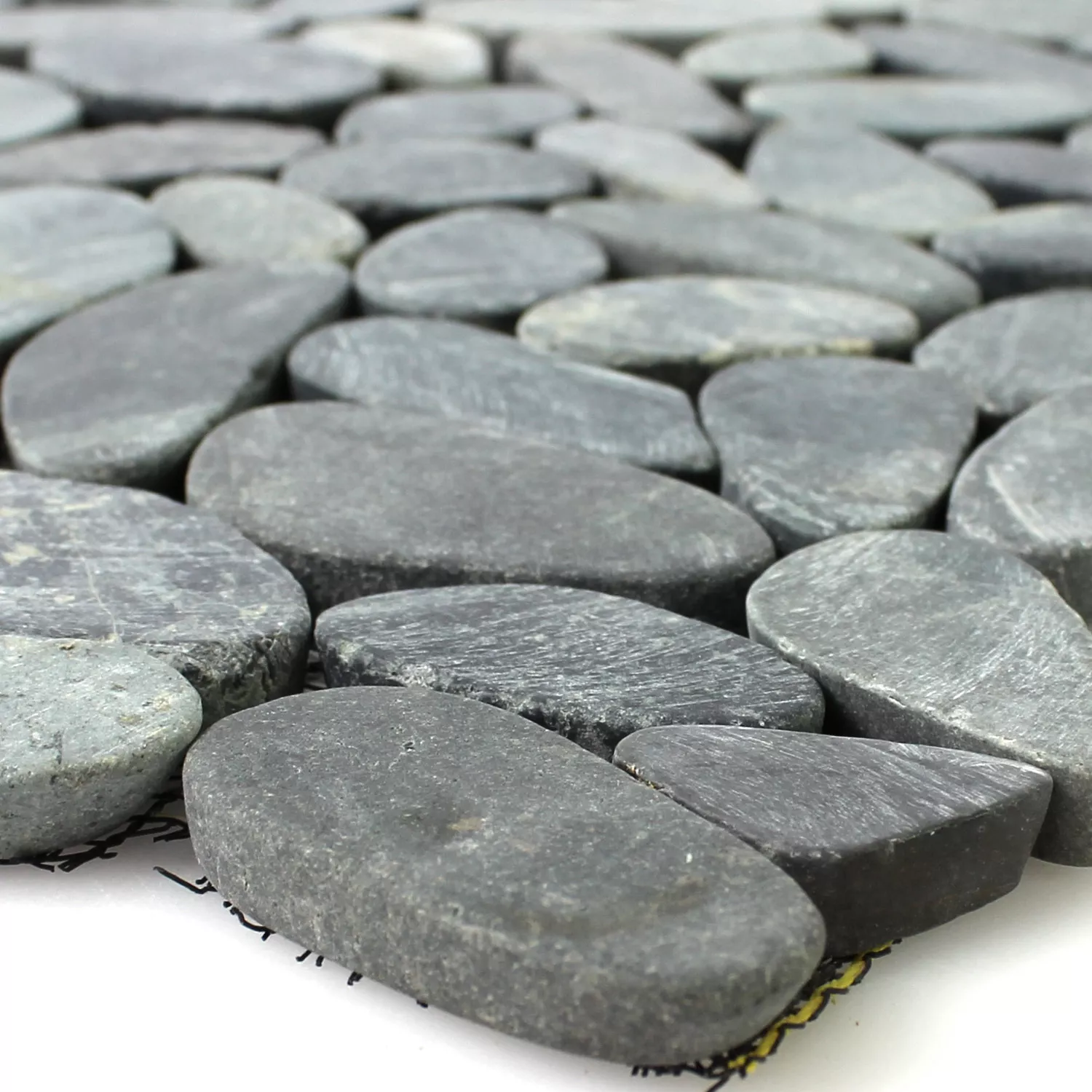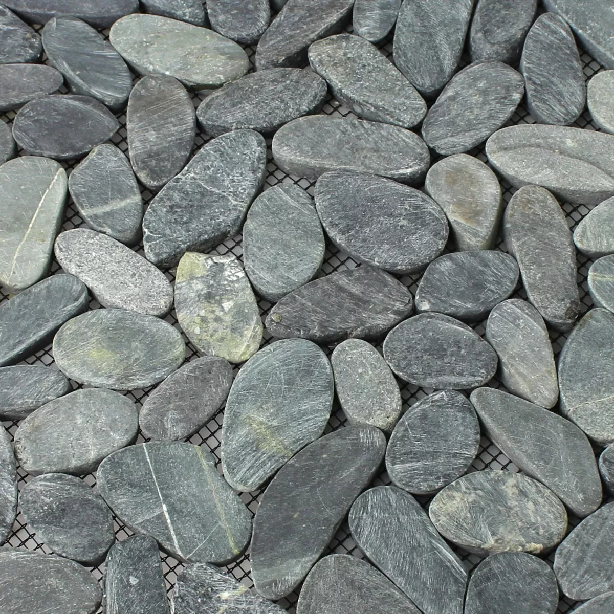 Muster von Mosaikfliesen Flusskiesel Burgas Geschnitten Schwarz