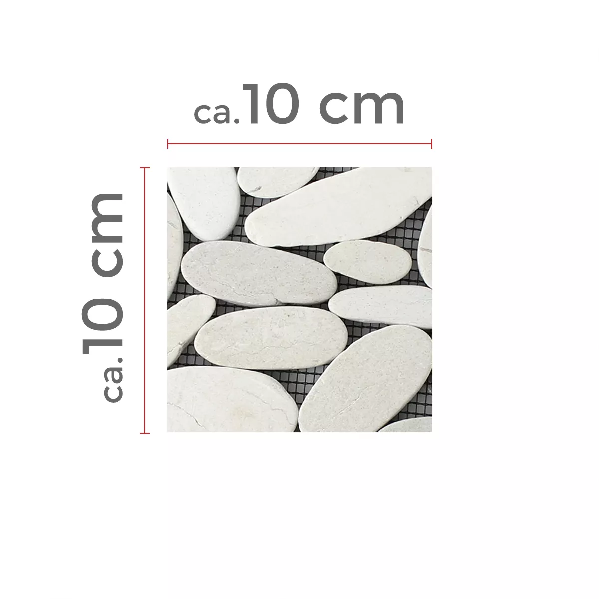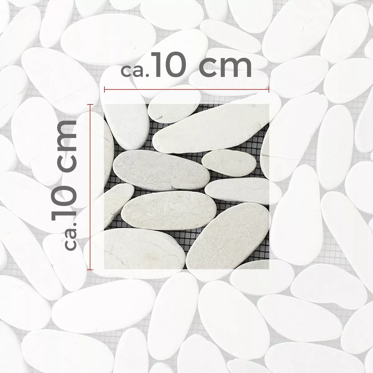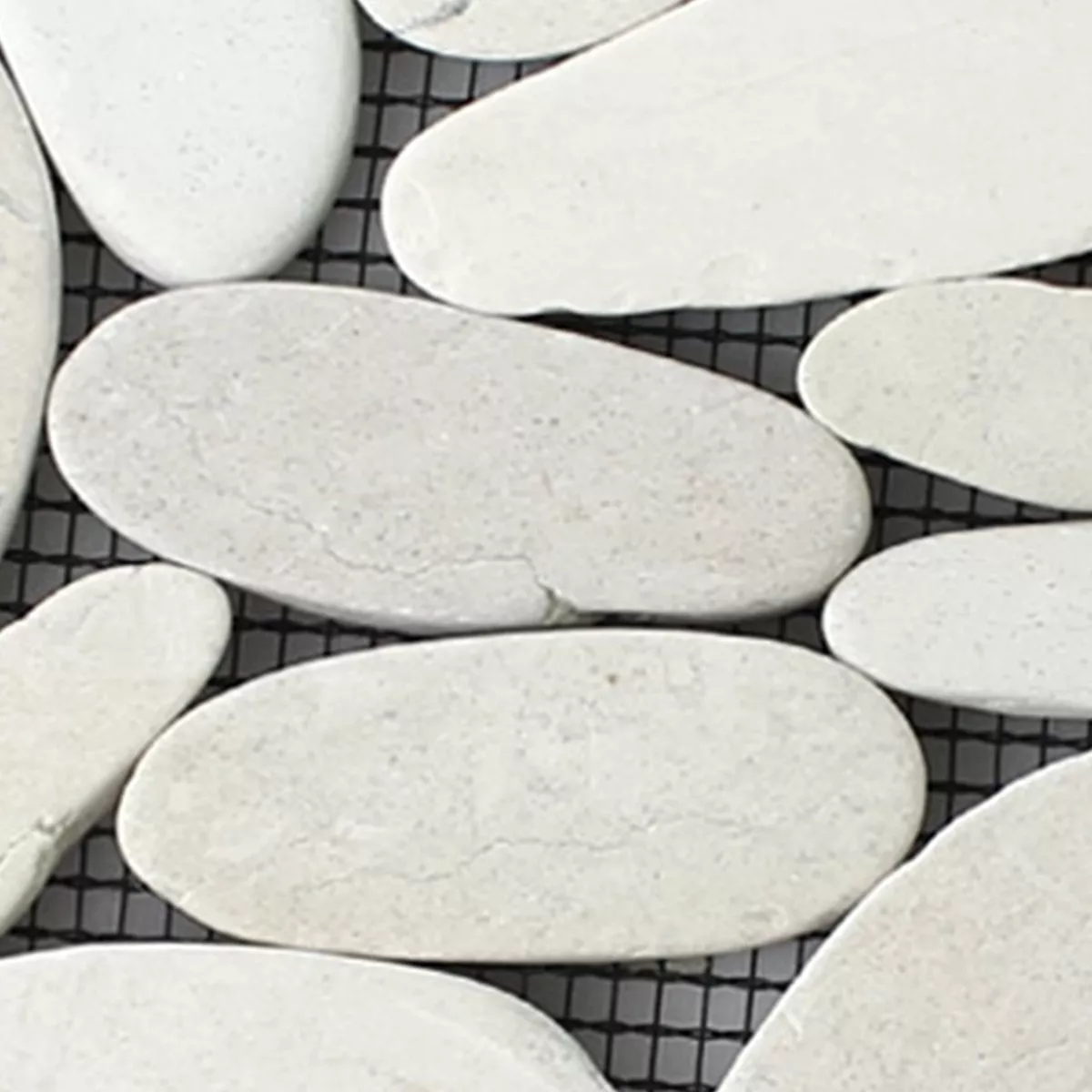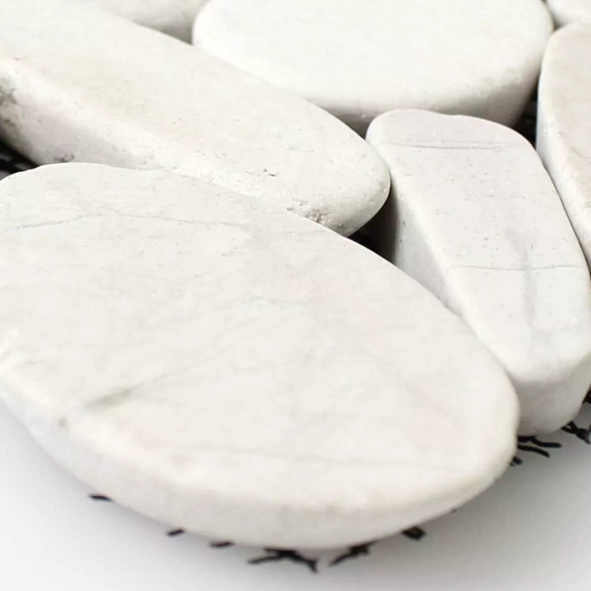 Muster von Mosaikfliesen Flusskiesel Burgas Geschnitten Weiss