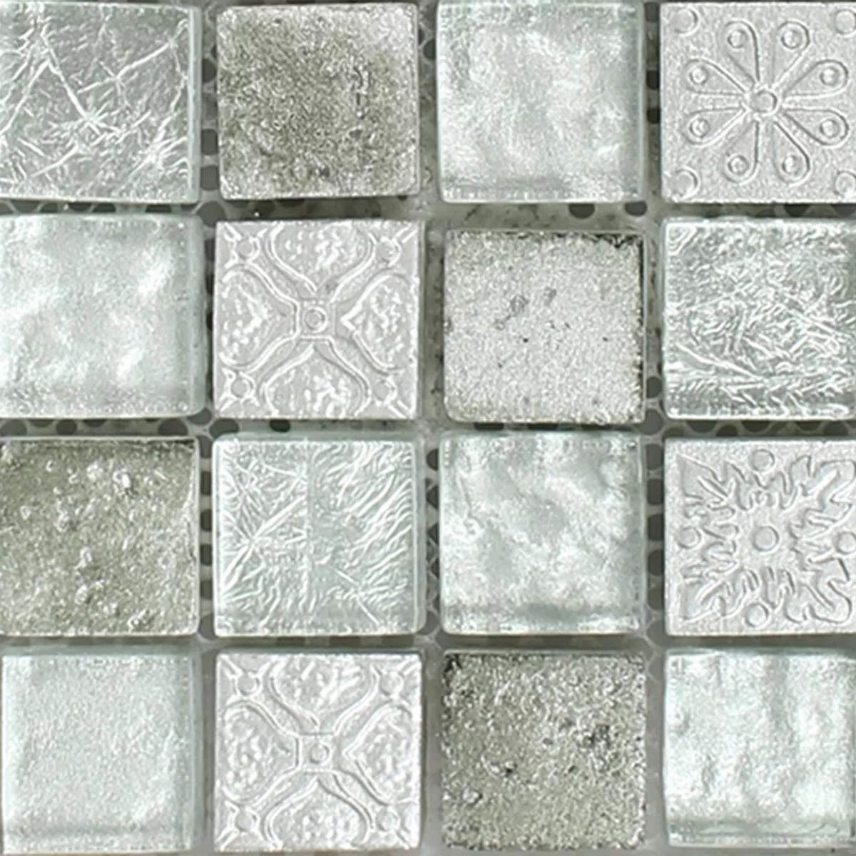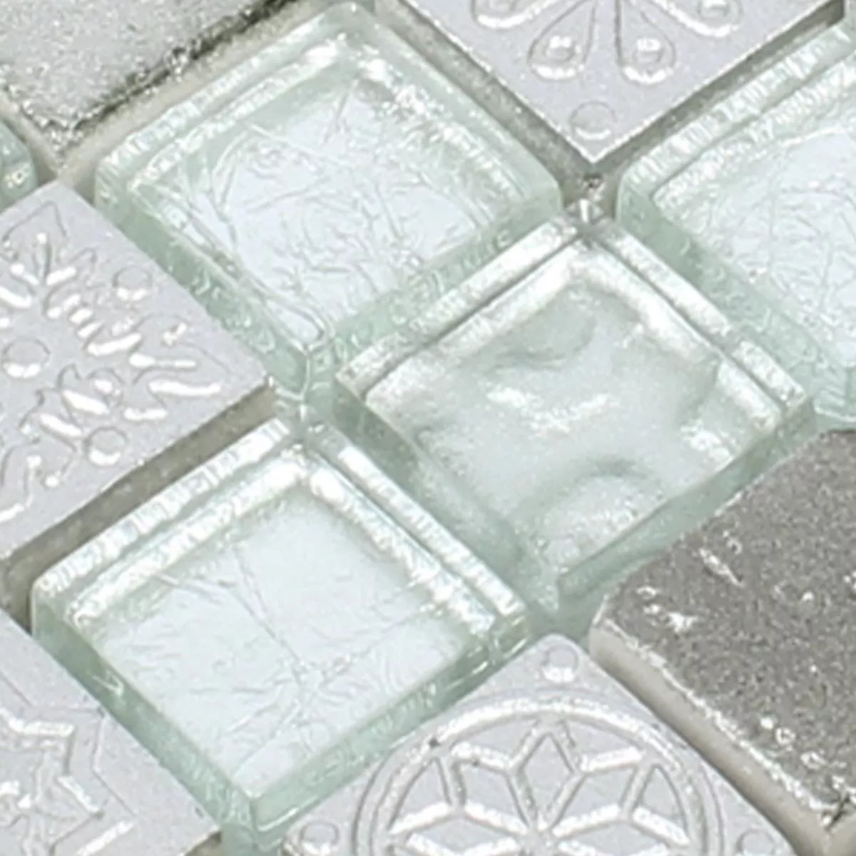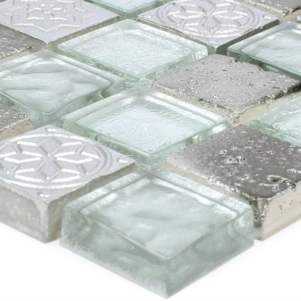 Muster von Mosaikfliesen Georgia Glas Naturstein Mix Silber