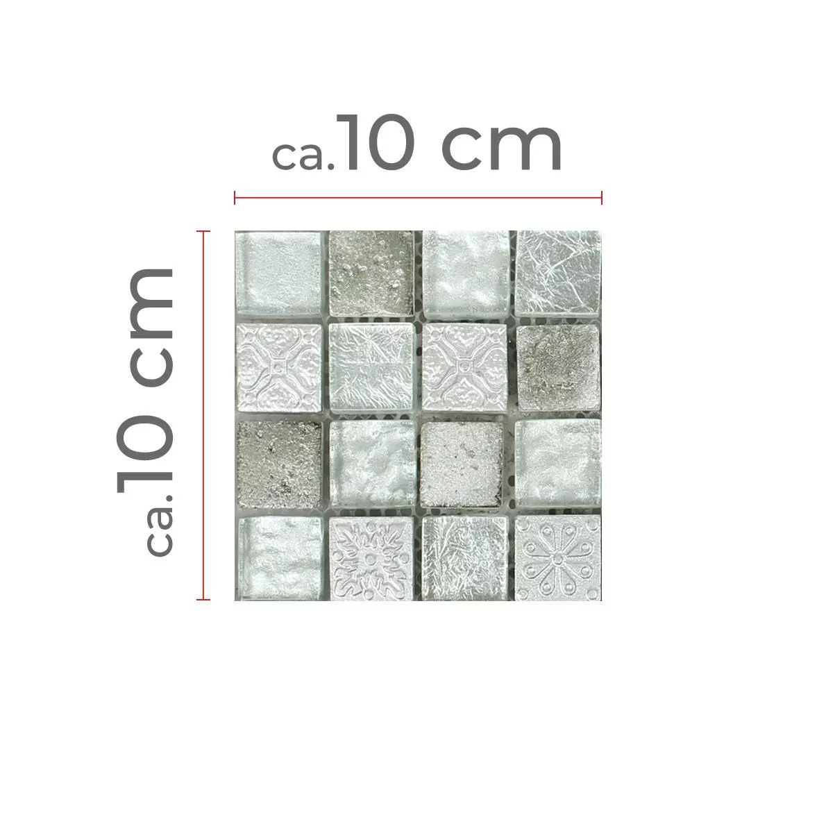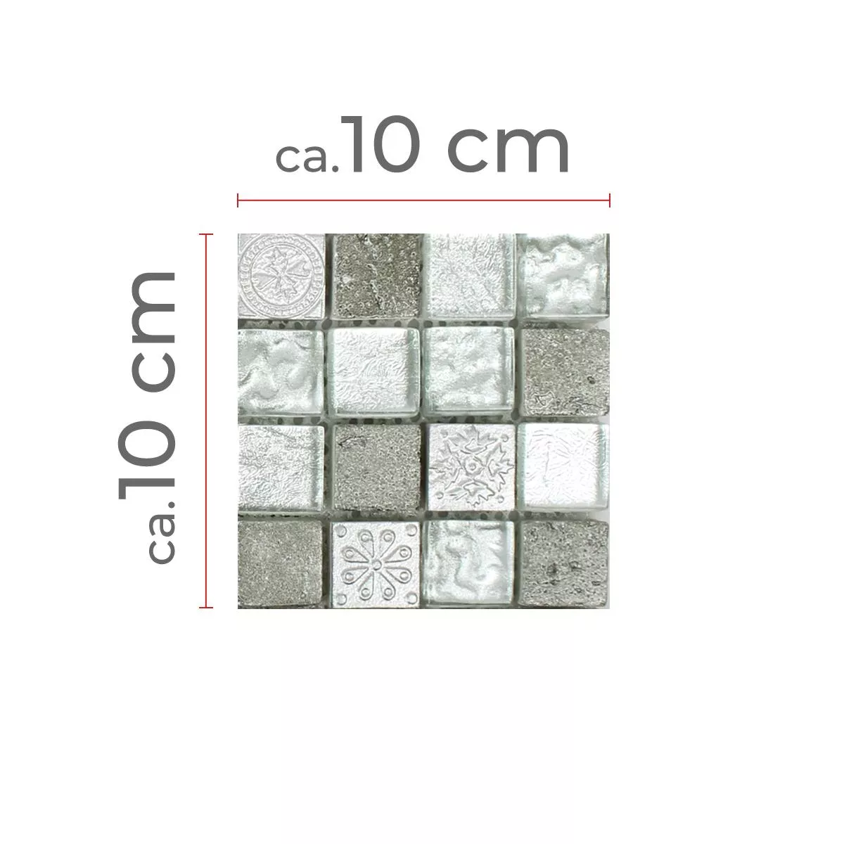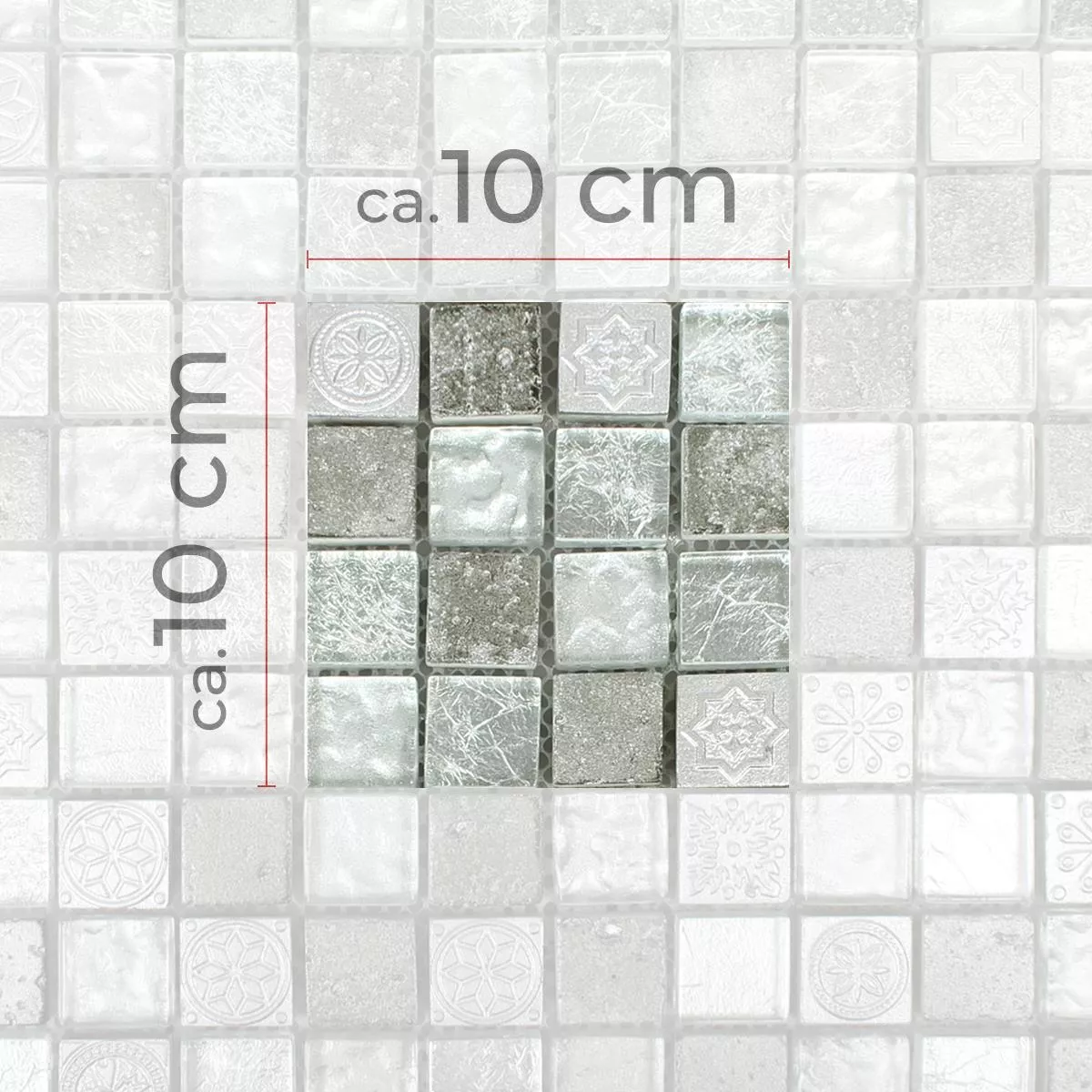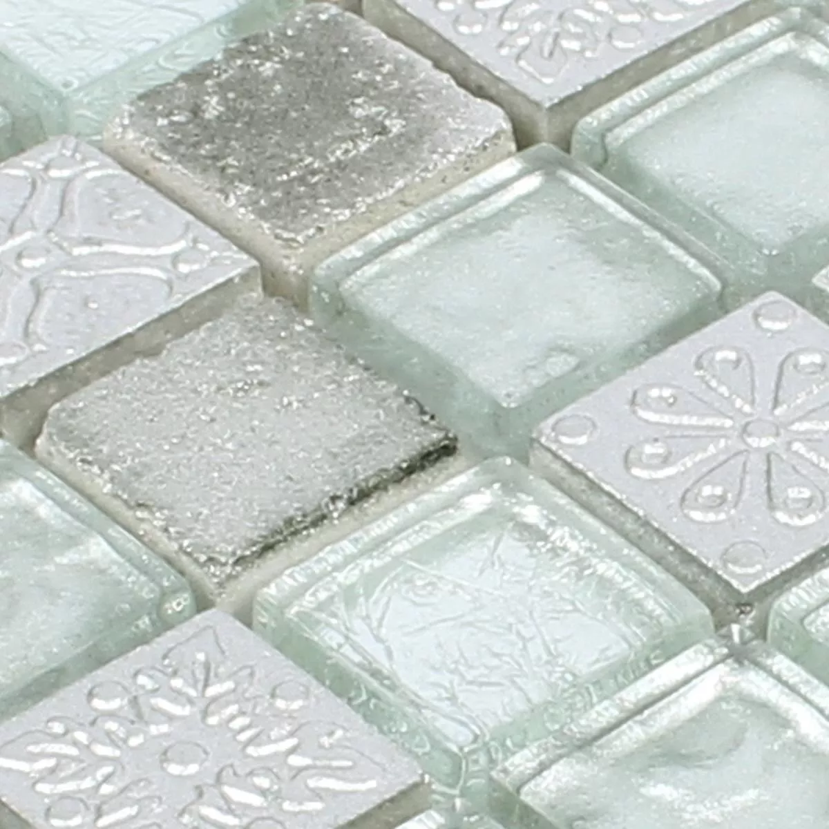 Muster von Mosaikfliesen Georgia Glas Naturstein Mix Silber