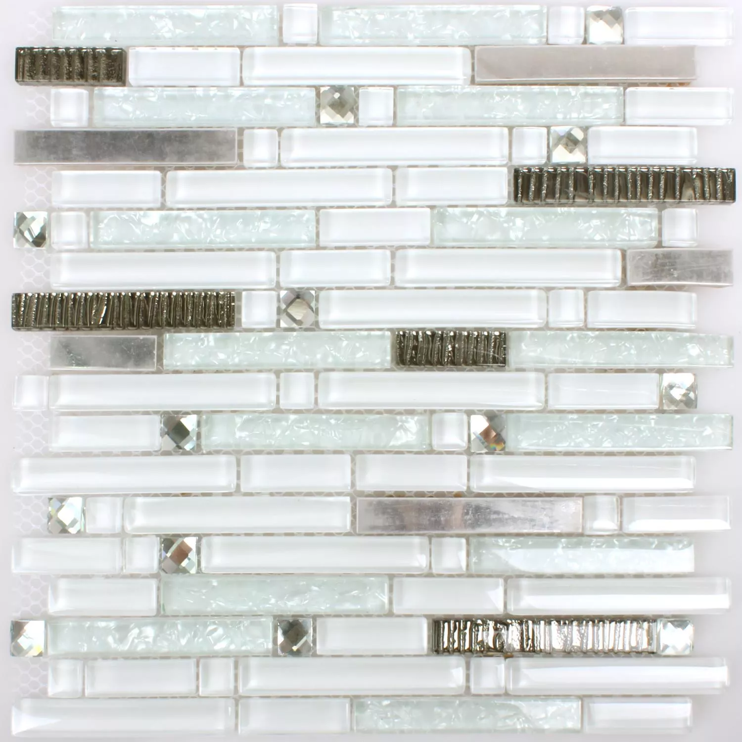 Muster von Mosaikfliesen Glas Metall Latoya Silber Weiss