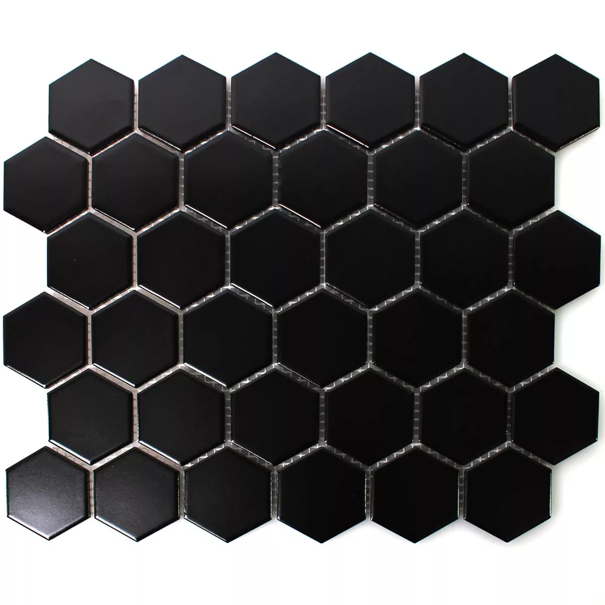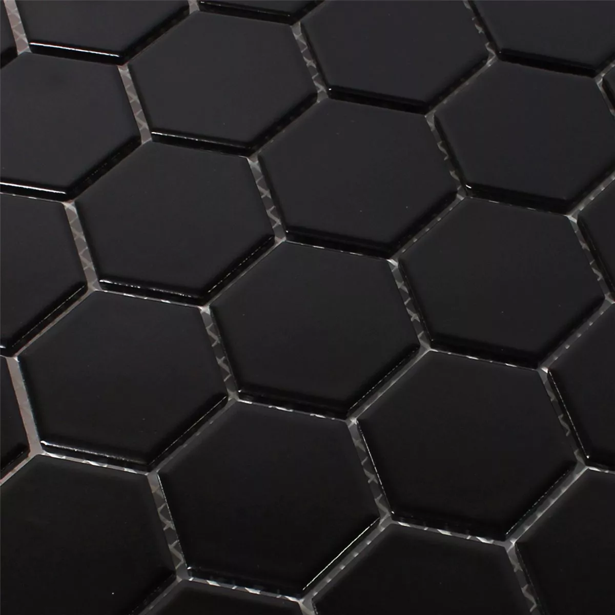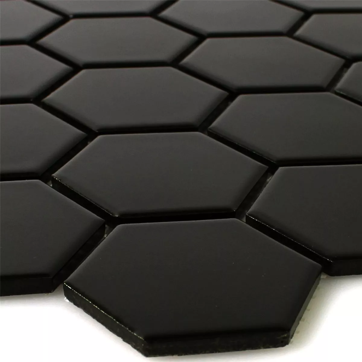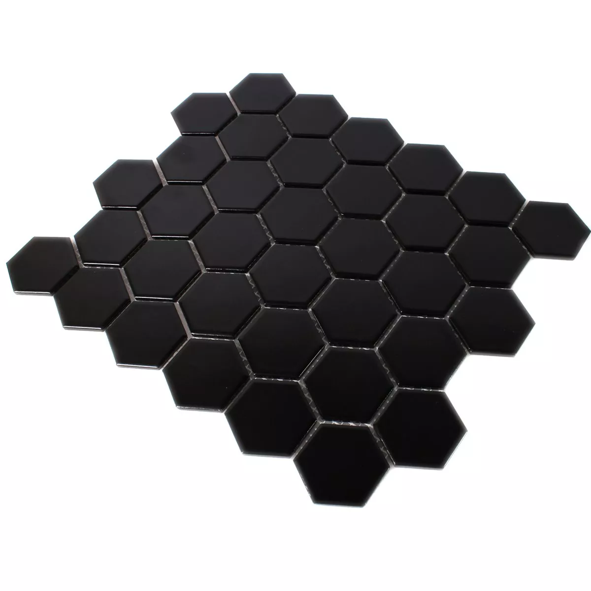 Muster von Mosaikfliesen Keramik Hexagon Schwarz Matt H51