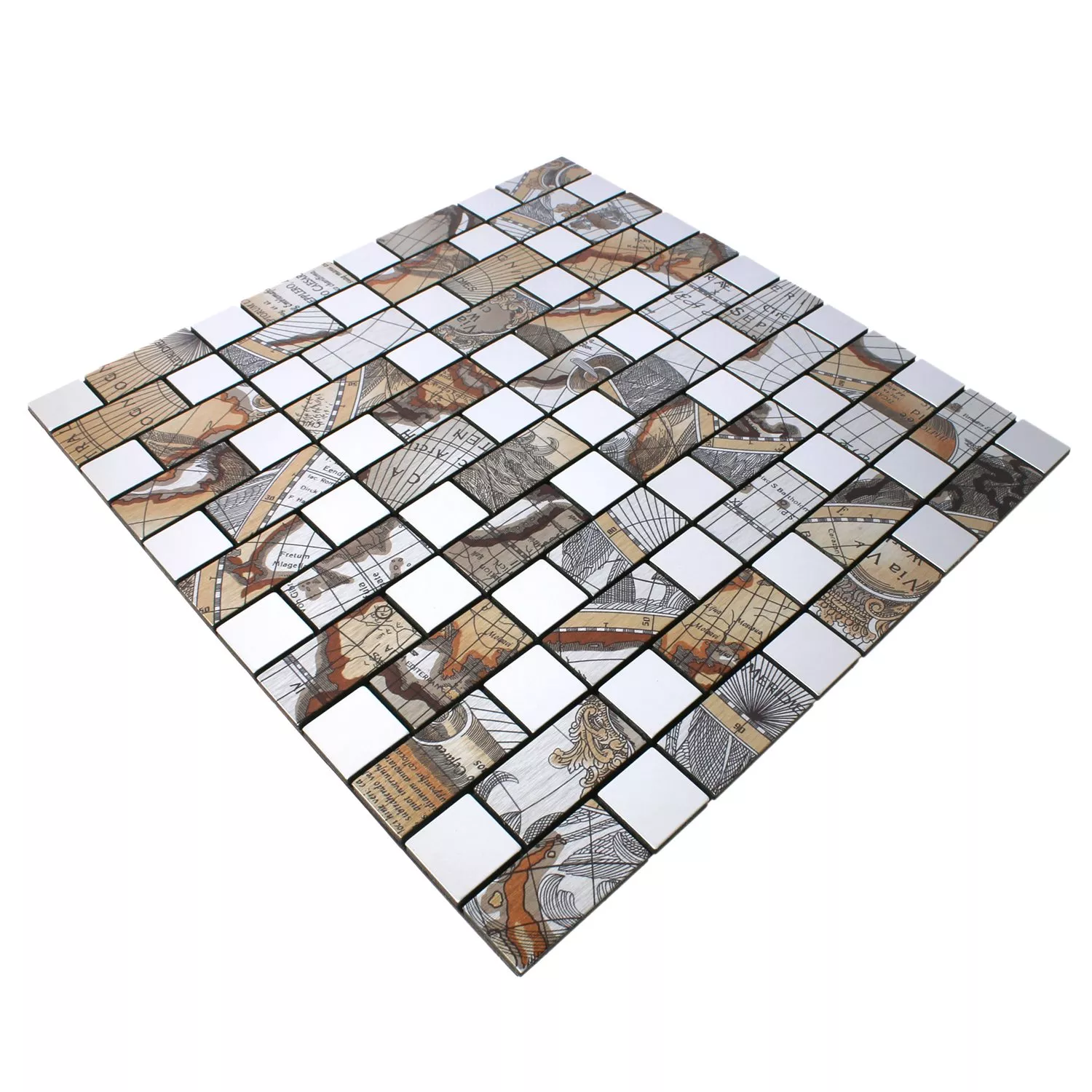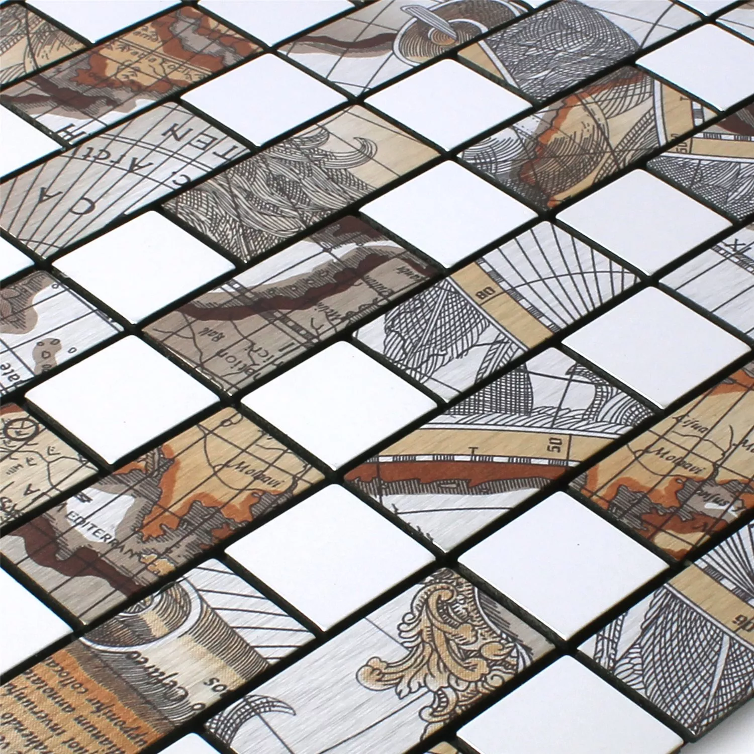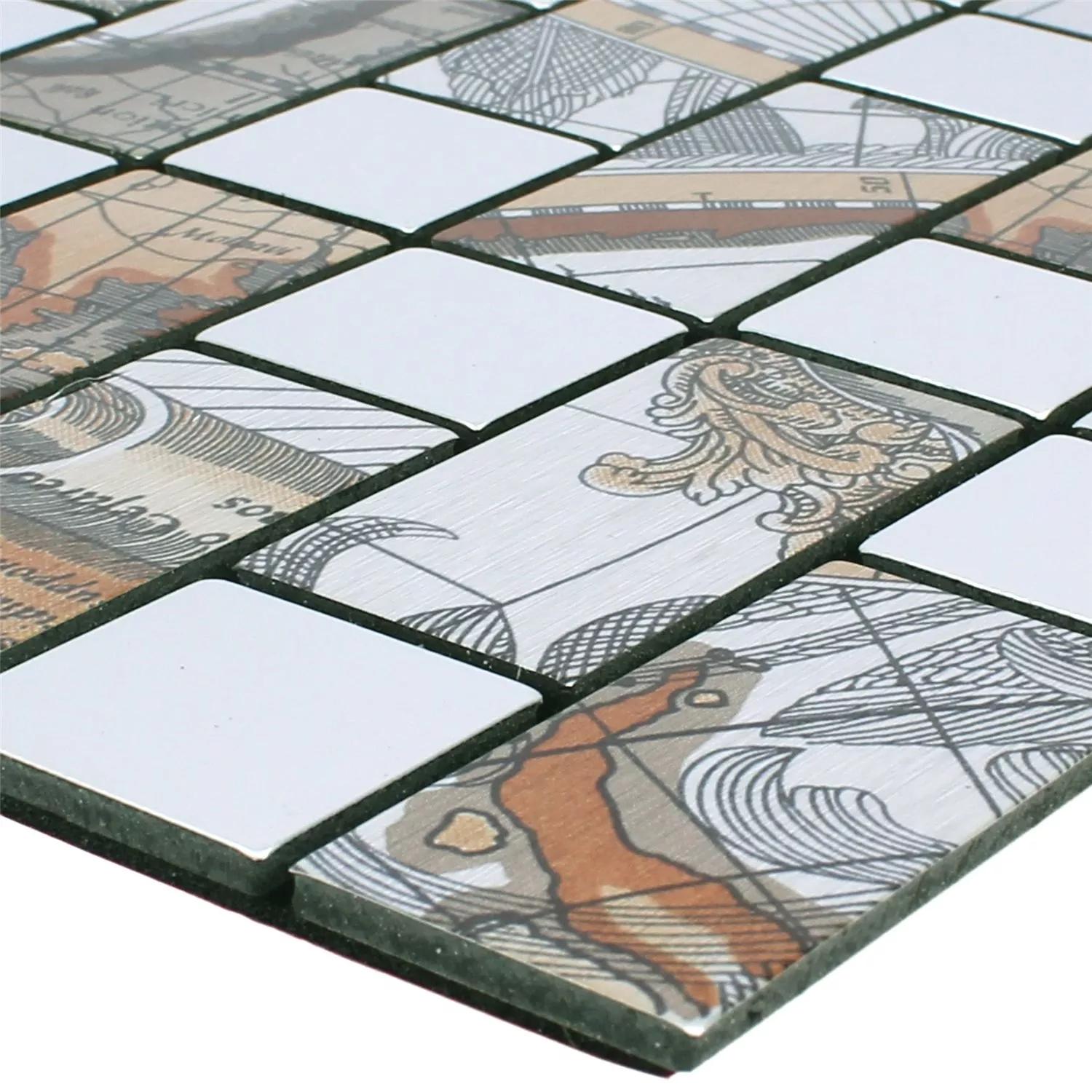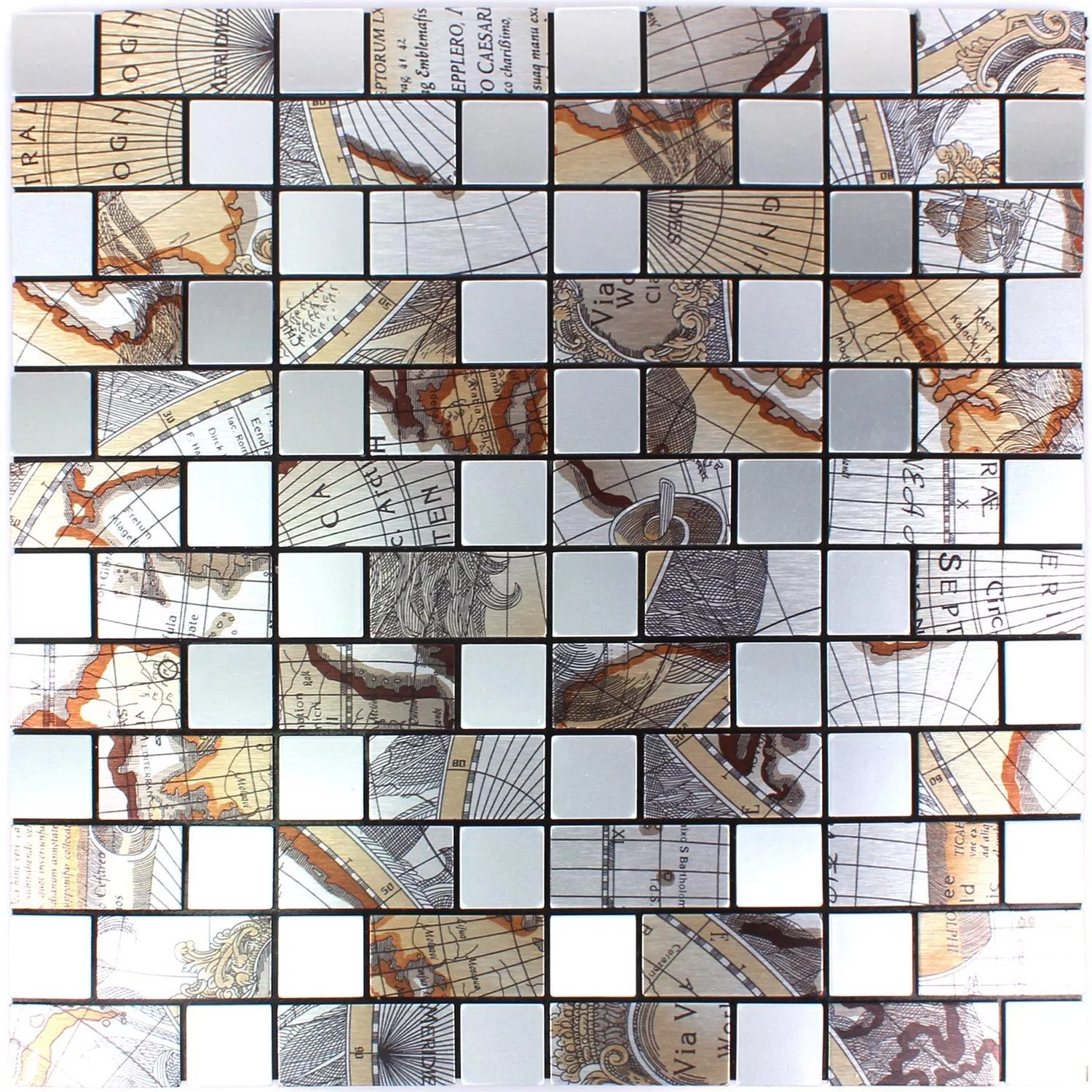 Muster von Mosaikfliesen Metall Selbstklebend Pinta Weltkarte Silber Rechteck