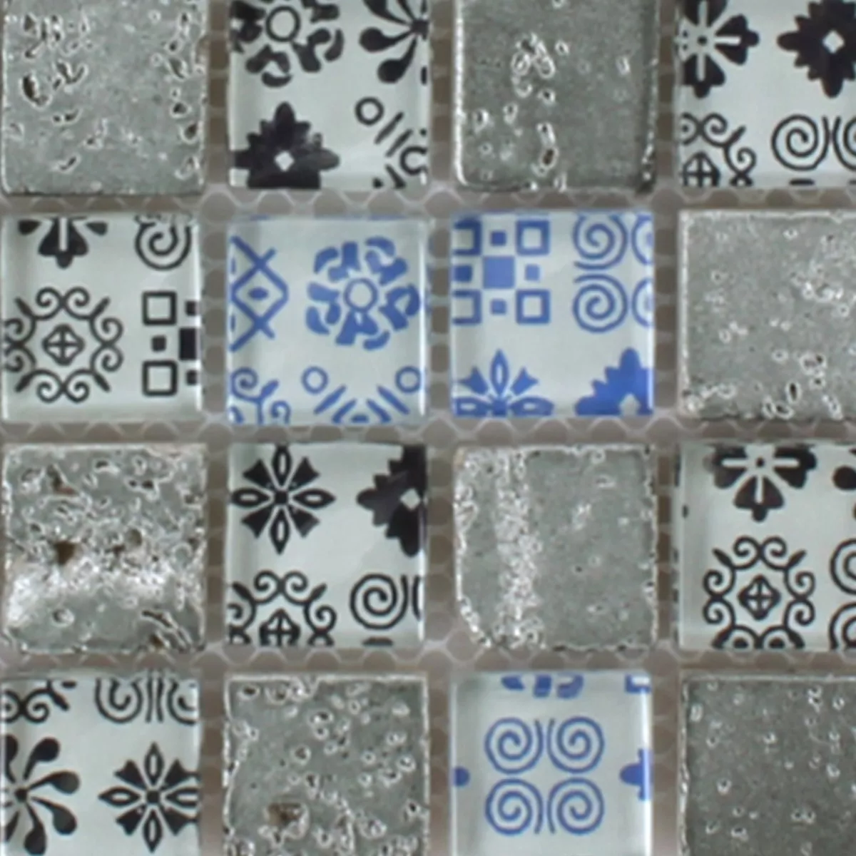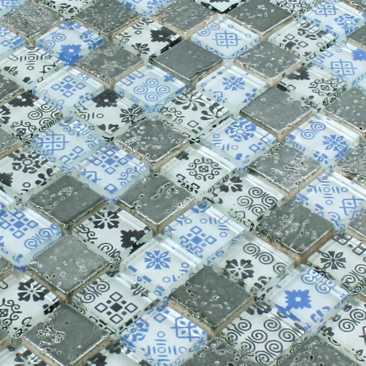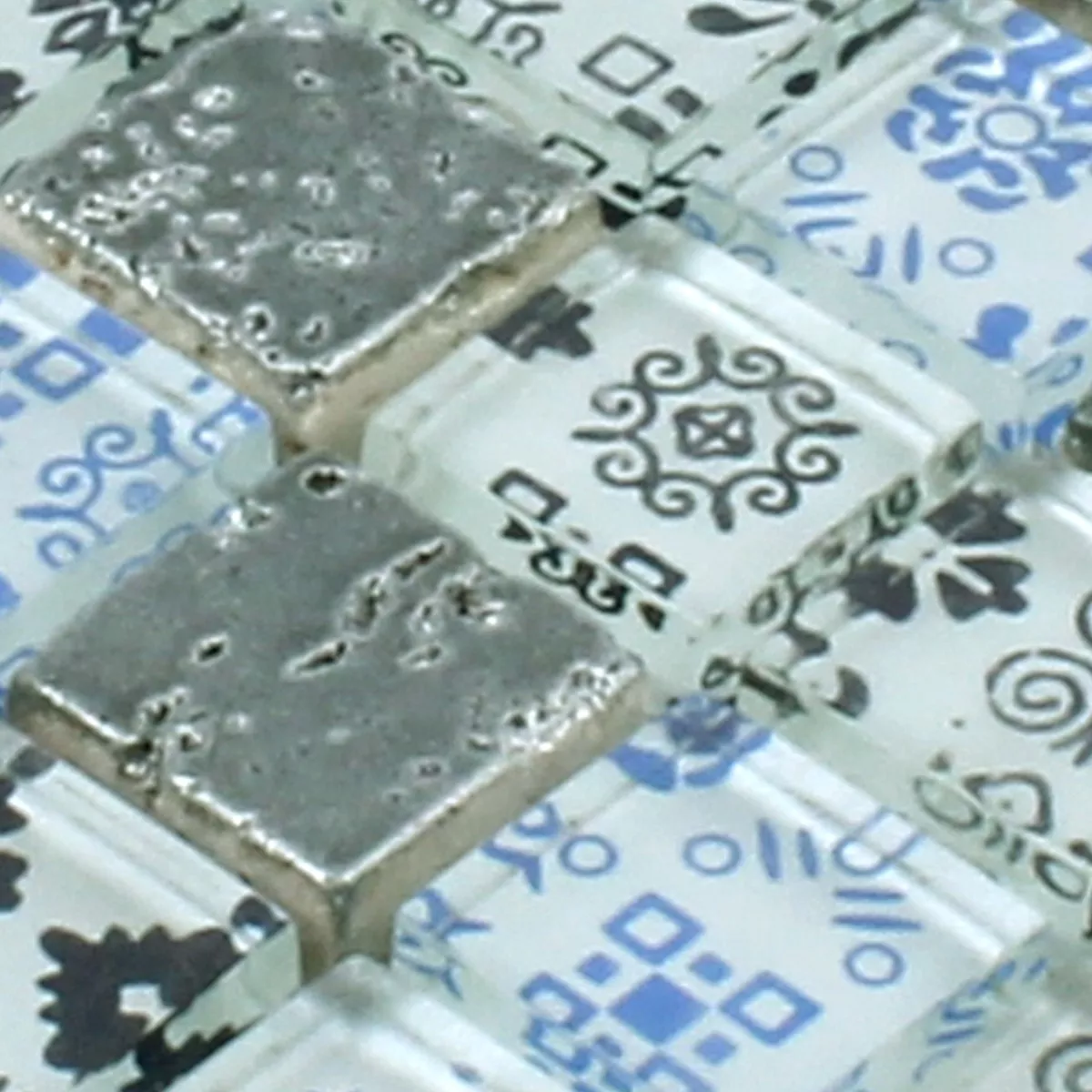 Muster von Mosaikfliesen Resin Glas Belmont Blau Silber
